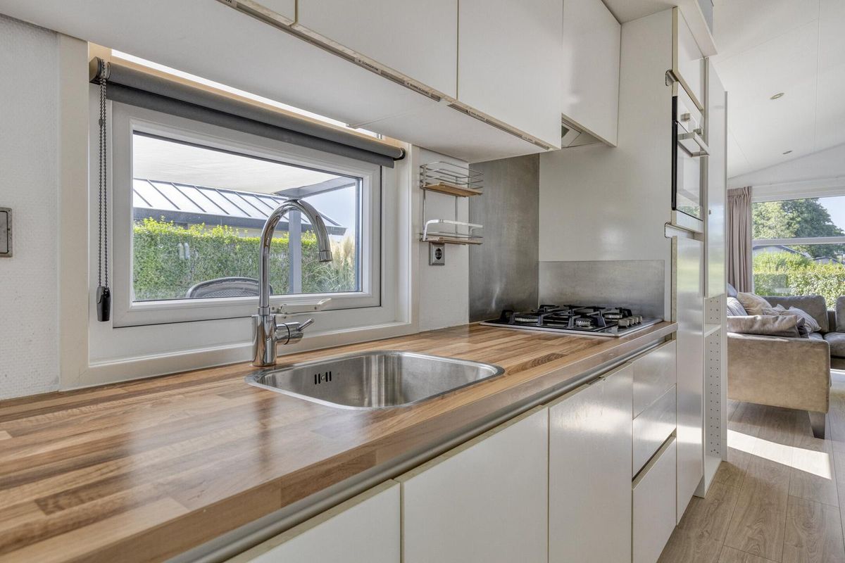 De sfeervolle en lichte woonkamer is gericht op de tuin en profiteert van veel natuurlijk licht dankzij de royale raampartijen en erkers. Via de openslaande deuren heeft u direct toegang tot de verzorgde en ruim opgezette tuin – een heerlijke plek om te ontspannen. De moderne open keuken sluit naadloos aan op de woonkamer en is voorzien van diverse inbouwapparatuur, waaronder een combimagnetron, koelkast, vaatwasser, gaskookplaat en afzuigkap.