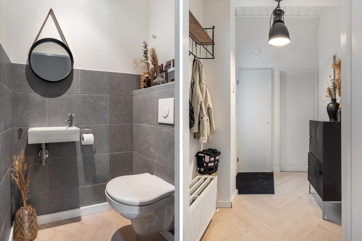 Met werkkast, meterkast, toiletruimte en toegang tot de vertrekken.