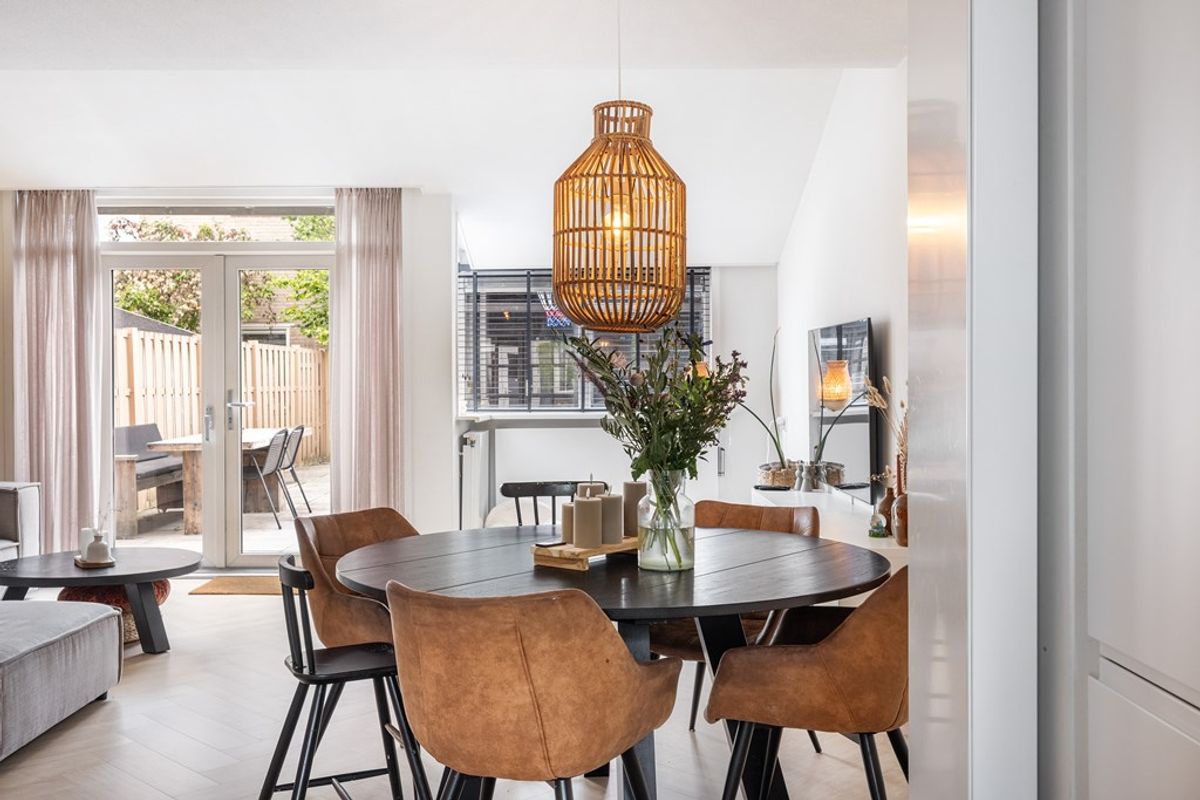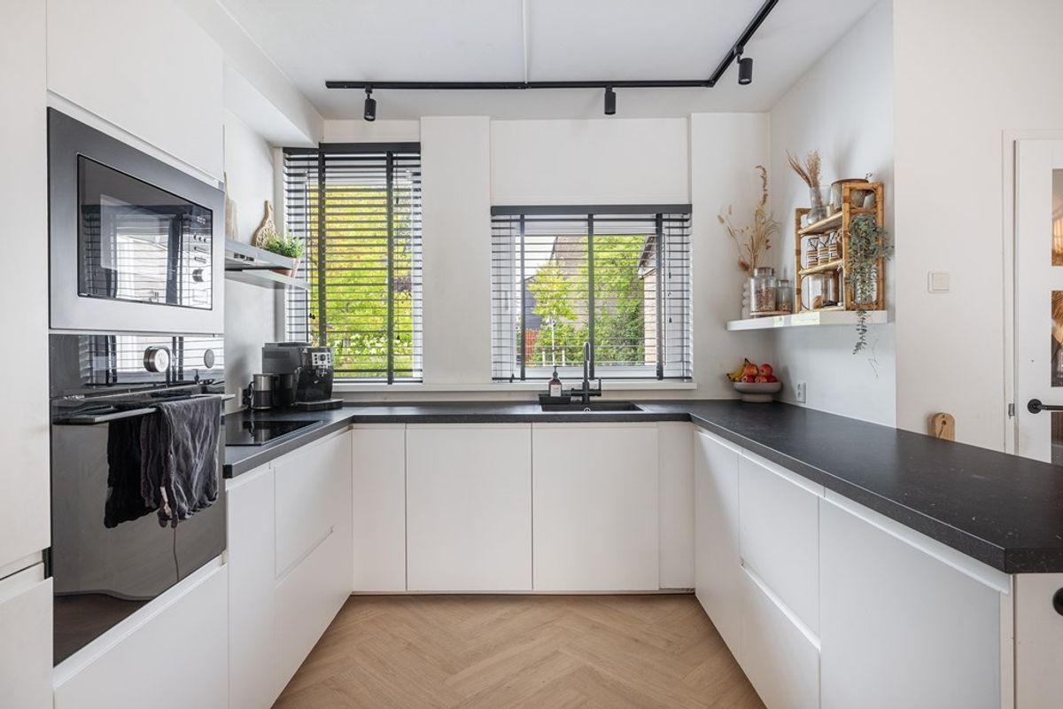 Stap binnen in de ruime woonkamer met veel lichtinval en een moderne, open keuken. De keuken is volledig uitgerust met inbouwapparatuur – ideaal voor wie graag kookt en gezellig samen eet.