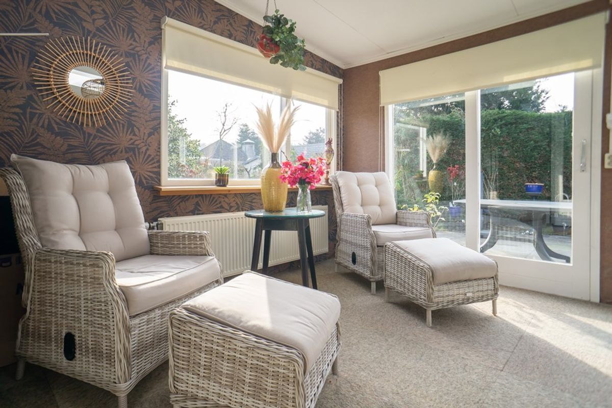 De bungalow is licht en ruim opgezet. De woning heeft momenteel twee slaapkamers (voorheen drie) en een sfeervolle woonkamer met een puntdak, wat zorgt voor een extra ruimtelijk gevoel. De woonkamer staat in directe verbinding met de keuken en de royale serre, waardoor binnen en buiten mooi in elkaar overlopen. Verder beschikt de woning over een badkamer met douche en wastafel, een separaat toilet, een bijkeuken en een tuin rondom de woning met twee bergingen. Maak snel een afspraak om deze woning te komen bekijken