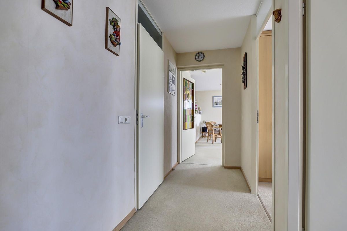 Naast de entree via de garage is er een gesloten entree bij het trappenhuis met lift naar de 3e etage. De ruime hal van het appartement geeft een warm welkom en met name door de prachtig ingebouwde garderobekast. Naast de meterkast is er vanuit de hal toegang tot het toilet (zwevend, volledig betegeld en een fonteintje), de badkamer, de 2 slaapkamers en de woonkamer.