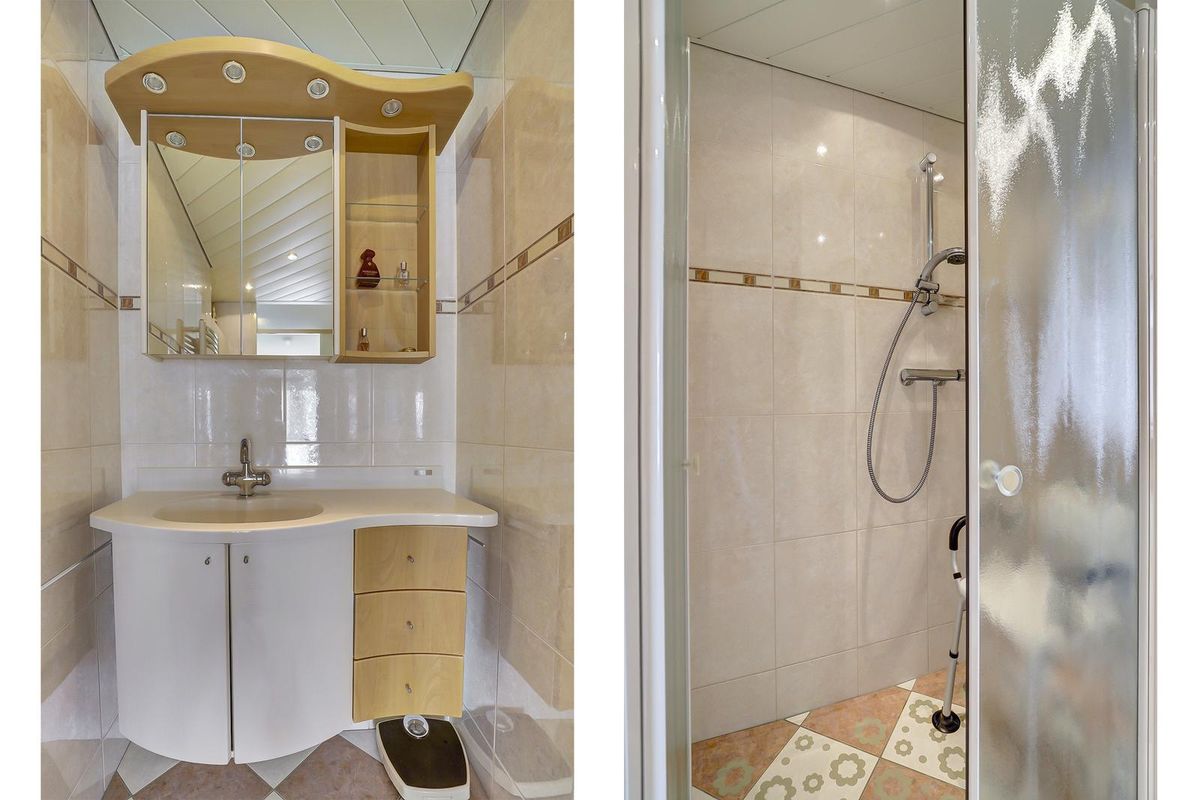 De badkamer is keurig afgewerkt en voorzien van een ruime douche met dubbele deur en een praktisch zitje. Daarnaast treft u hier een wastafelmeubel en een design radiator. Beide slaapkamers hebben toegang tot het terras en zijn prettig qua formaat.