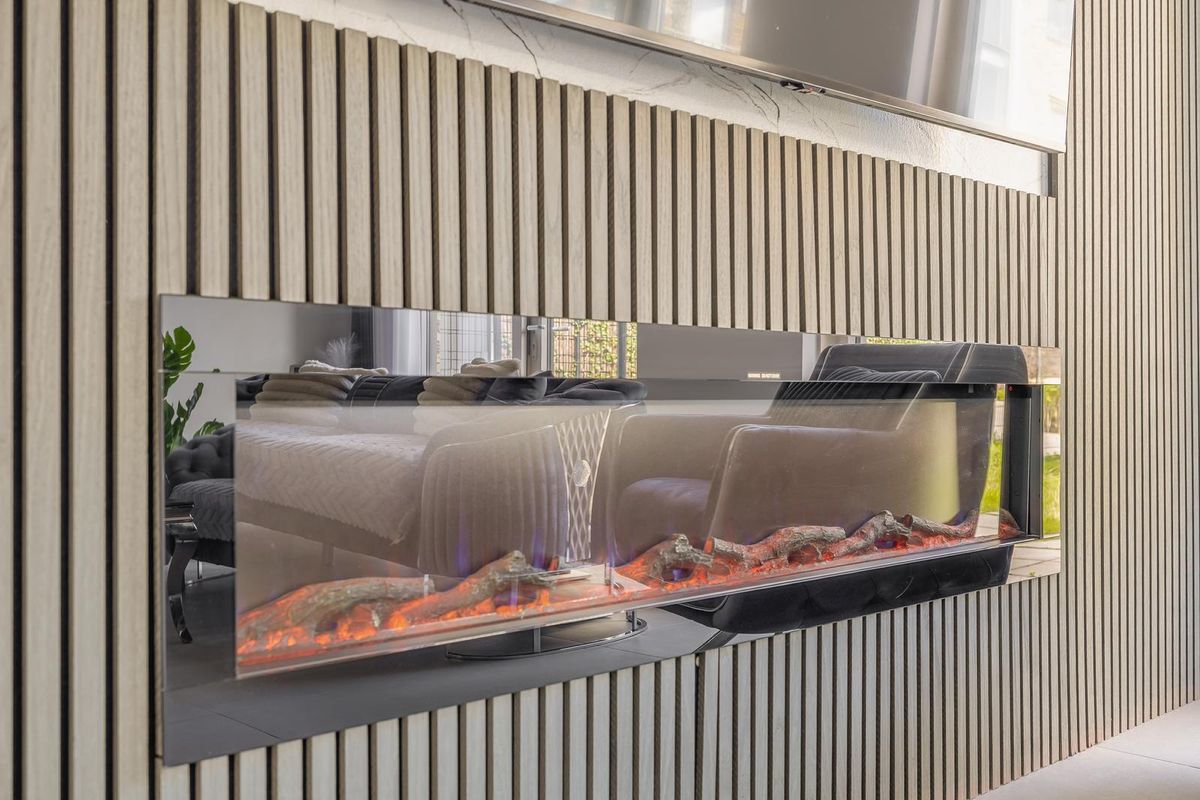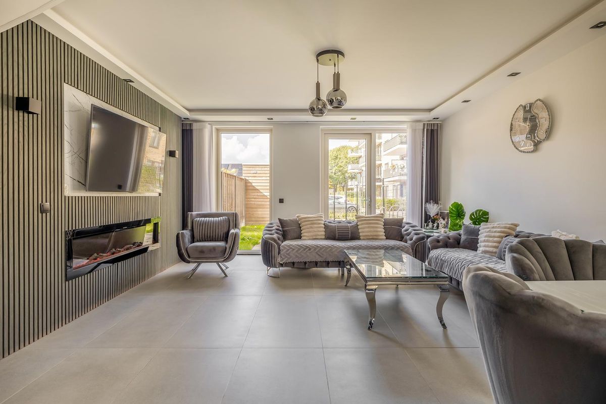 De ruime, tuingerichte woonkamer is aangenaam licht en voorzien van een strakke afwerking en beschikt over een prachtige cinewall met sfeervolle haard. Hier is ook de trapopgang en een handige trapkast aanwezig. Verder is er toegang tot de achtertuin en vindt u aan de voorzijde de fraaie open keuken.