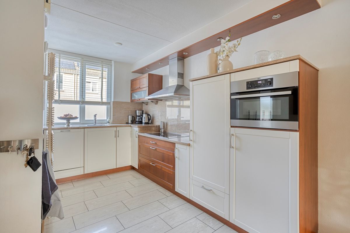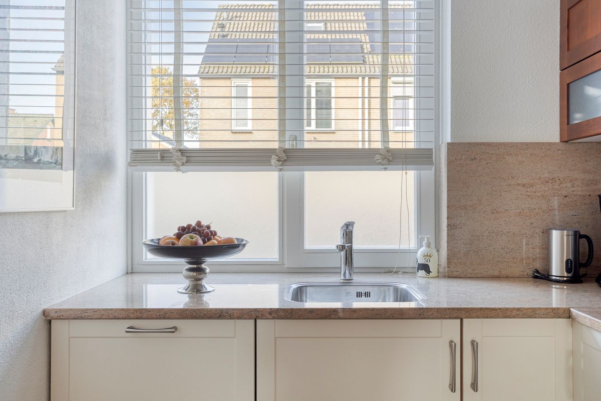 Begane grond: Entree, meterkast, modern toilet met fonteintje, woonkamer met open keuken voorzien van granieten aanrechtblad, inductie kookplaat, afzuigkap, vaatwasser, combi oven/magnetron en koelkast, de woonkamer heeft een airco, een parketvloer en een schuifpui naar de tuin.