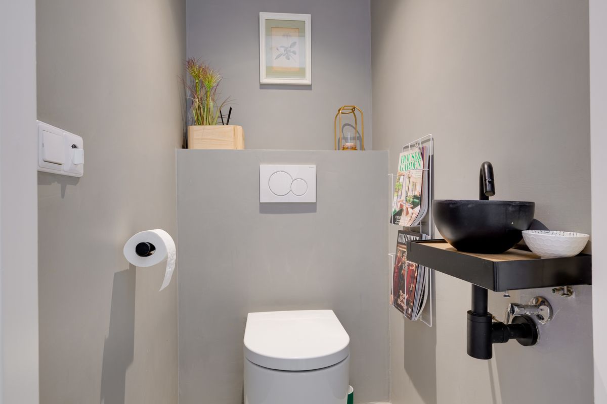 The bathroom? Modern, sleek, and luxurious. A lovely walk-in shower for the weekday rush, a spacious bathtub for Sunday mornings. With a double sink, stylish faucets, and a wall-hung toilet, this is the place to start your day relaxed and unwind in the evening.