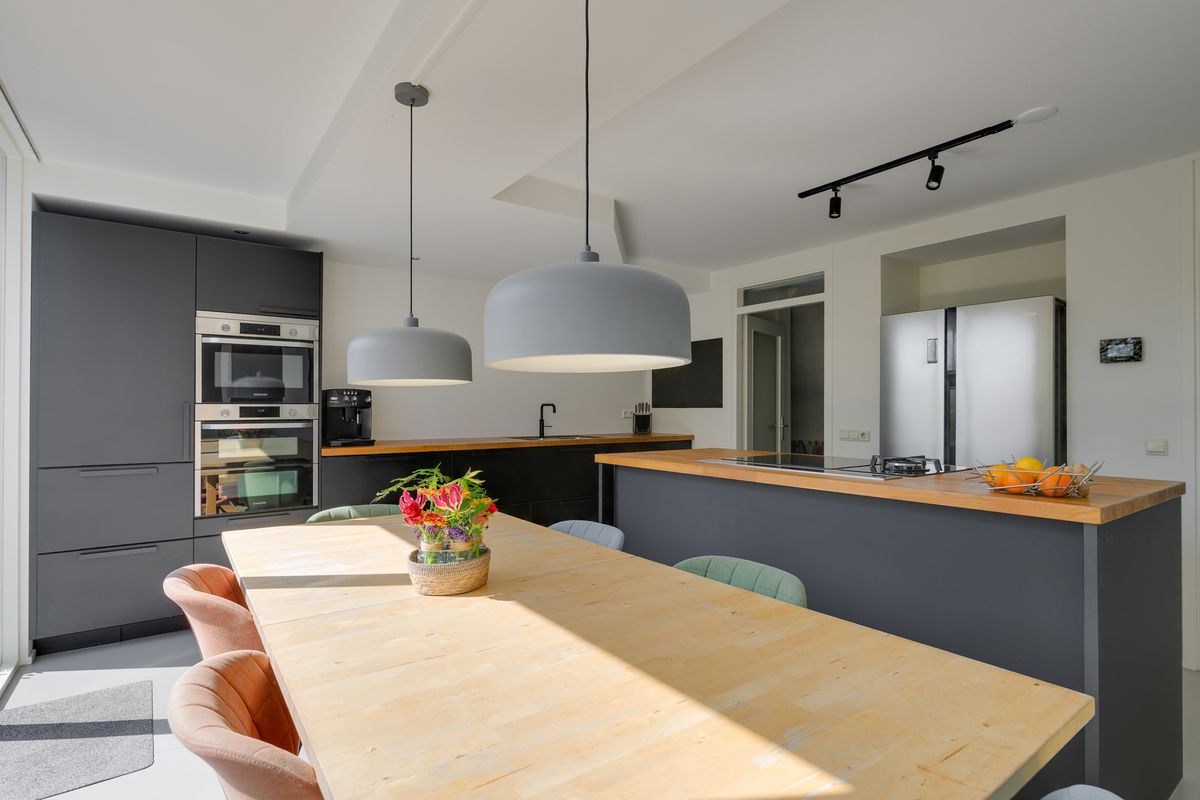 At the back of the house, you'll find the real eye-catcher of this floor: a lovely kitchen-diner with sliding doors leading to the garden. And what a kitchen! A stylish combination of modern and practical: a Quooker, an induction cooktop with a gas burner for the enthusiast, a double oven (including a steam oven!), an American-style refrigerator, and of course, a dishwasher that takes the work out of your hands. Perfect for a busy family or if you enjoy entertaining friends. Slide open the door and voilà – inside and out become one. Imagine: balmy summer evenings, babbling music, children playing in the grass, you with a glass of wine at the garden table.