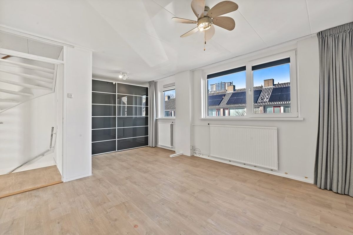 Via de overloop krijg je toegang tot alle vertrekken op deze verdieping. De ruime hoofdslaapkamer is aan de voorzijde van de woning gelegen. Oorspronkelijk zijn dit twee slaapkamers geweest. Indien gewenst kan deze kamer weer eenvoudig in twee aparte slaapkamers worden opgesplitst. De tweede slaapkamer is aan de achterzijde te vinden en deze beschikt over een vaste kast. Ook slaapkamer drie ligt aan de achterzijde. De inpandige badkamer is voorzien van een inloopdouche, wastafelmeubel en een aansluiting voor de wasmachine.