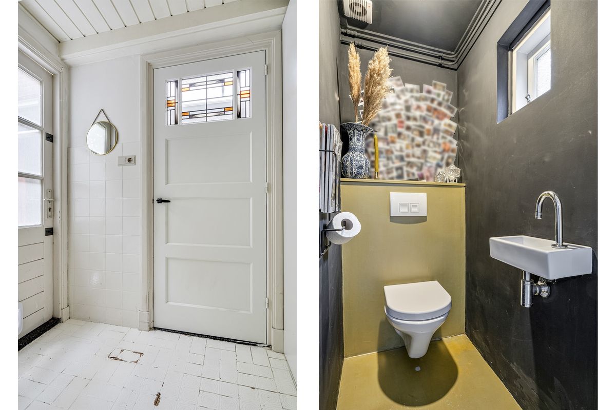 Vanuit de keuken bereik je de bijkeuken, waar zich het moderne toilet (2020) en een aansluitpunt ten behoeve van het was apparatuur bevindt. Vanuit hier is de achtertuin te bereiken.