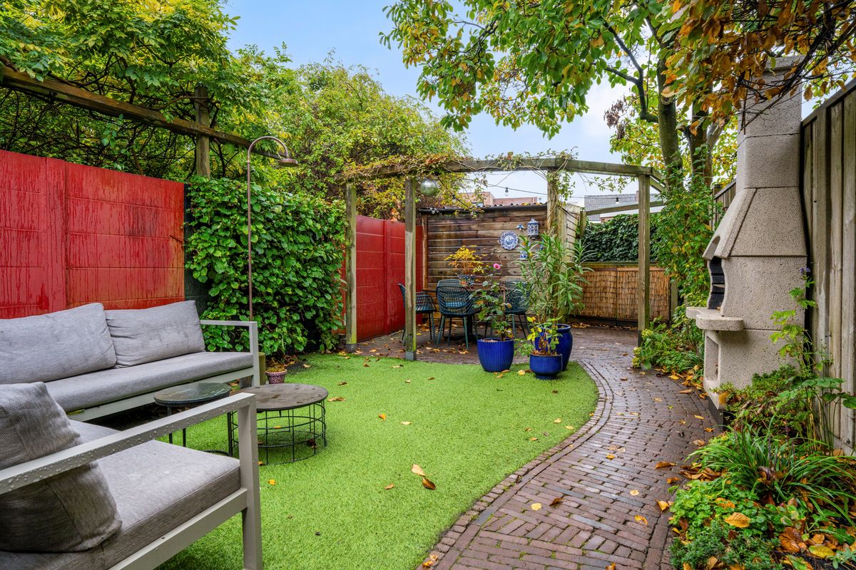 Achter de woning ligt een verzorgde, diepe tuin gelegen op het noordwesten. De tuin is keurig aangelegd en beschikt over verschillende terrassen, beplanting, kunstgras en een vrijstaande houten berging én een achterom. Of je nu houdt van tuinieren, buiten eten of gewoon ontspannen in de zon - hier geniet je van het buitenleven in alle rust en privacy.