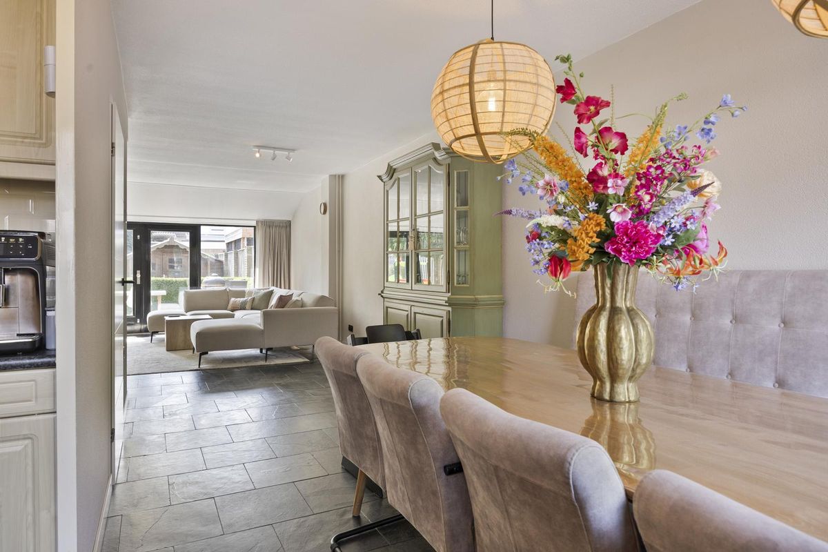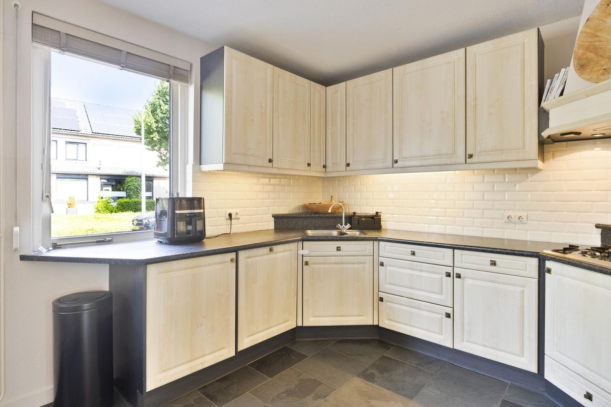 Je komt binnen in een nette hal met garderobe, toiletruimte en trapopgang. De ruime L-vormige woonkamer is licht en sfeervol, mede dankzij de openslaande tuindeuren die binnen en buiten naadloos met elkaar verbinden. De halfopen keuken heeft een ruime U-opstelling en is voorzien van een 5-pits gaskookplaat, afzuigkap, koelkast en vaatwasser – koken wordt hier een feestje. Vanuit de woonkamer bereik je de garage, waar het ook nog mogelijk is om een kantoor of speelkamer te realiseren. Kortom, volop mogelijkheden!