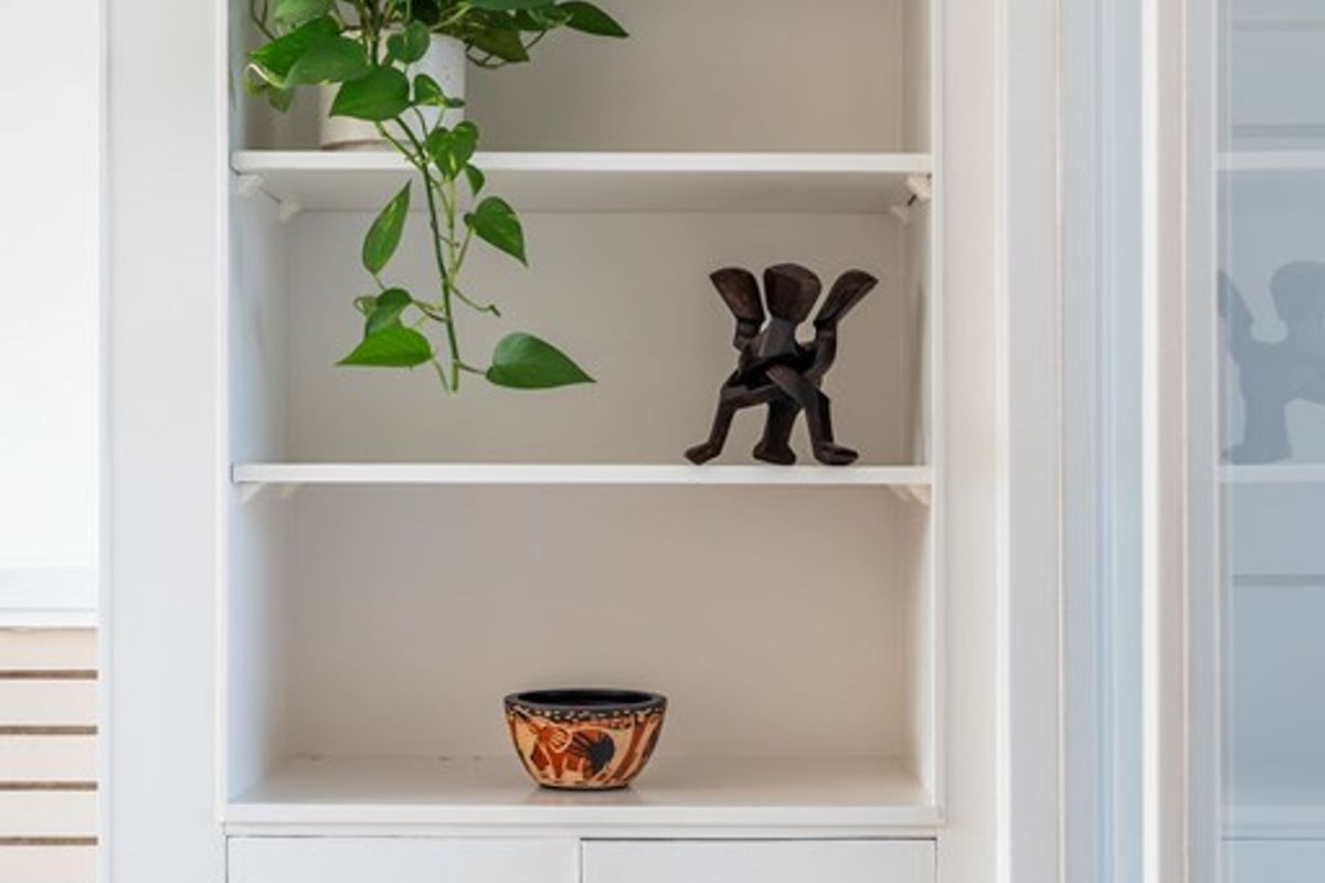 Slapen & Bergzolder: Het appartement beschikt over twee slaapkamers. De huidige bewoners hebben één kamer getransformeerd tot een royale walk-in closet, maar deze is eenvoudig weer als volwaardige slaap- of werkkamer in te richten.