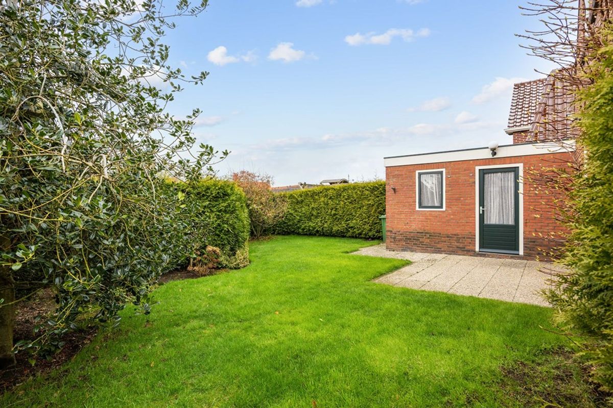 De tuin rondom de woning is verzorgd aangelegd en bestaat uit een combinatie van bestrating, gazon en groen. Hier geniet u van rust en privacy.
