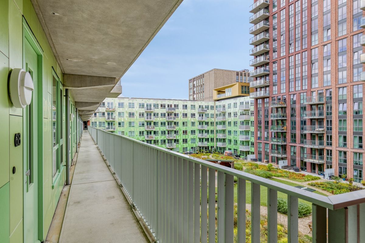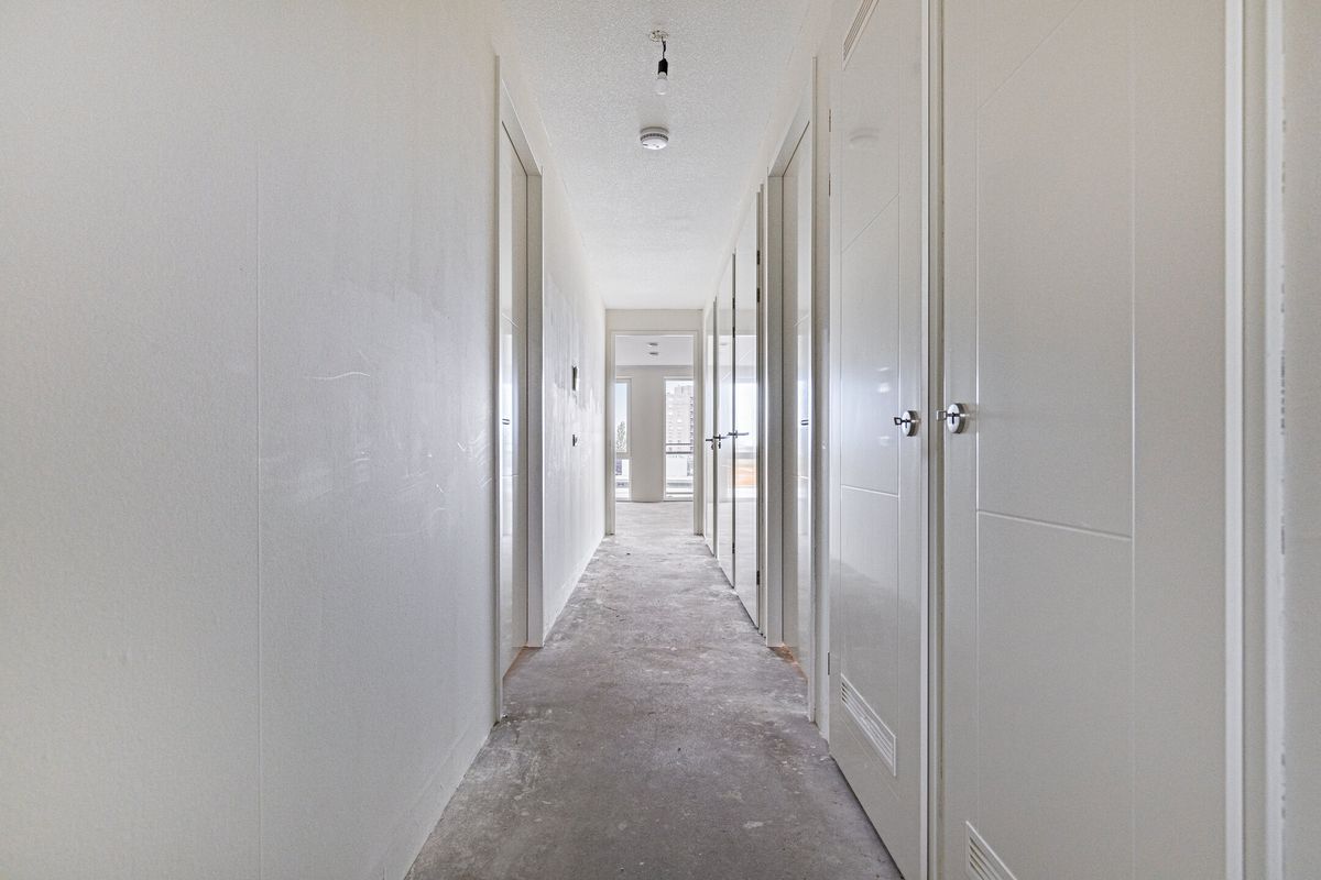 Het appartement ligt op de vijfde verdieping van een in 2023 opgeleverd complex. De lift brengt je naar boven, waar je via de galerij – met uitzicht op de binnentuin – bij je voordeur komt. Binnen tref je een frisse en lichte woning aan. Omdat het appartement ongestoffeerd wordt opgeleverd, heb je alle vrijheid om het naar eigen smaak in te richten.