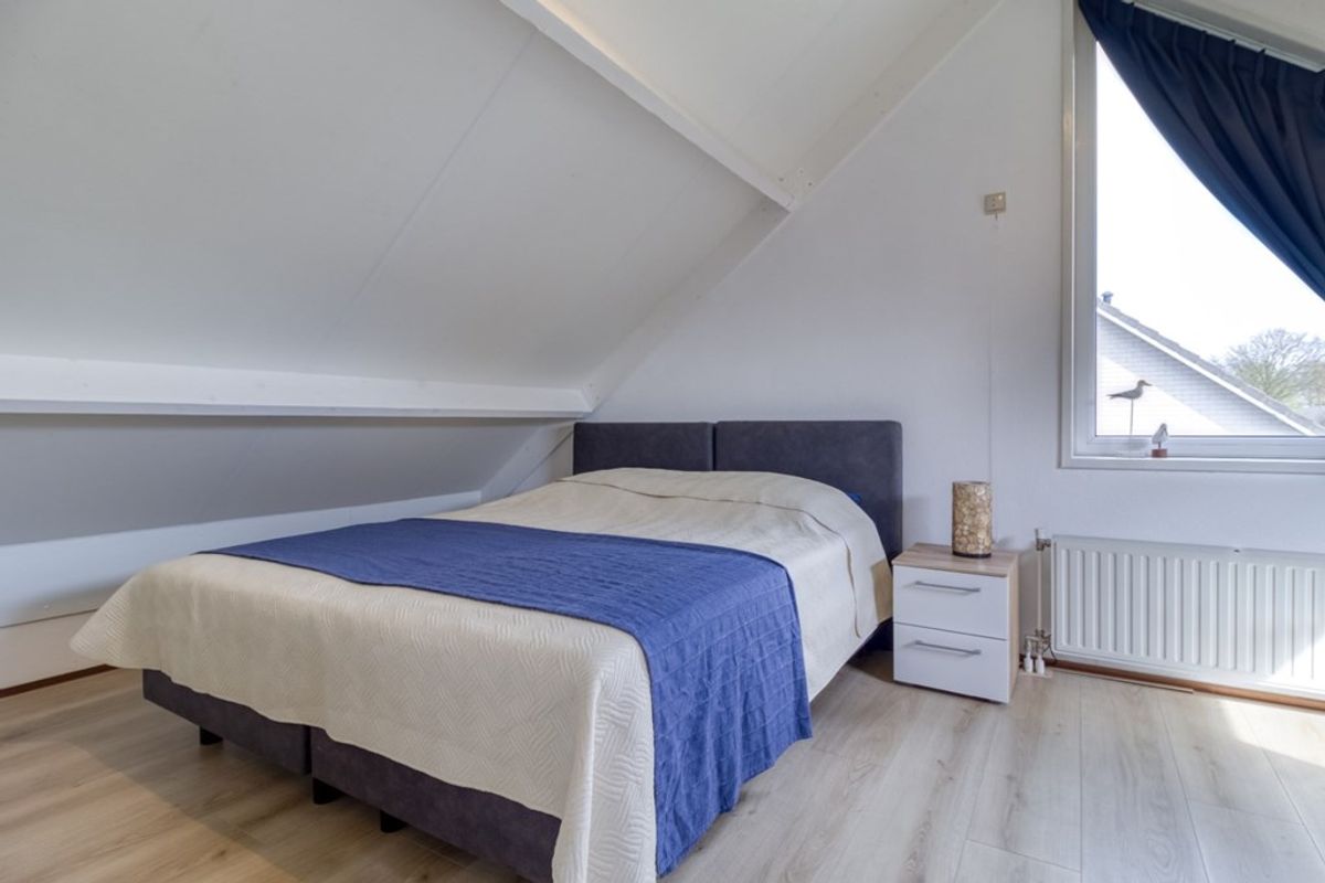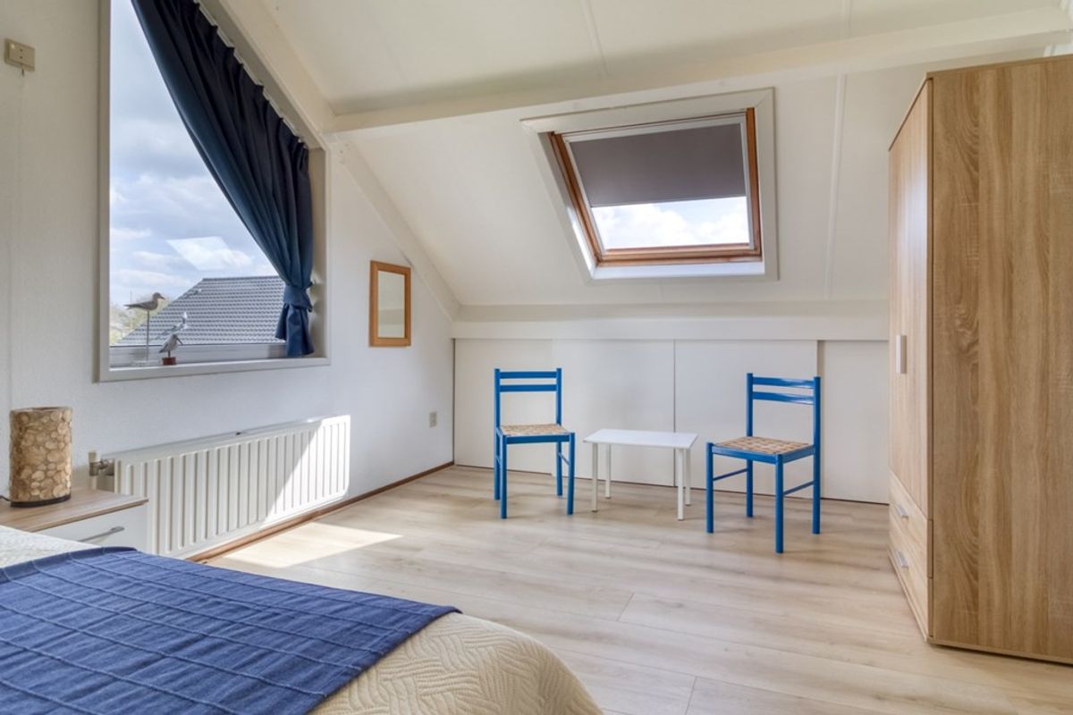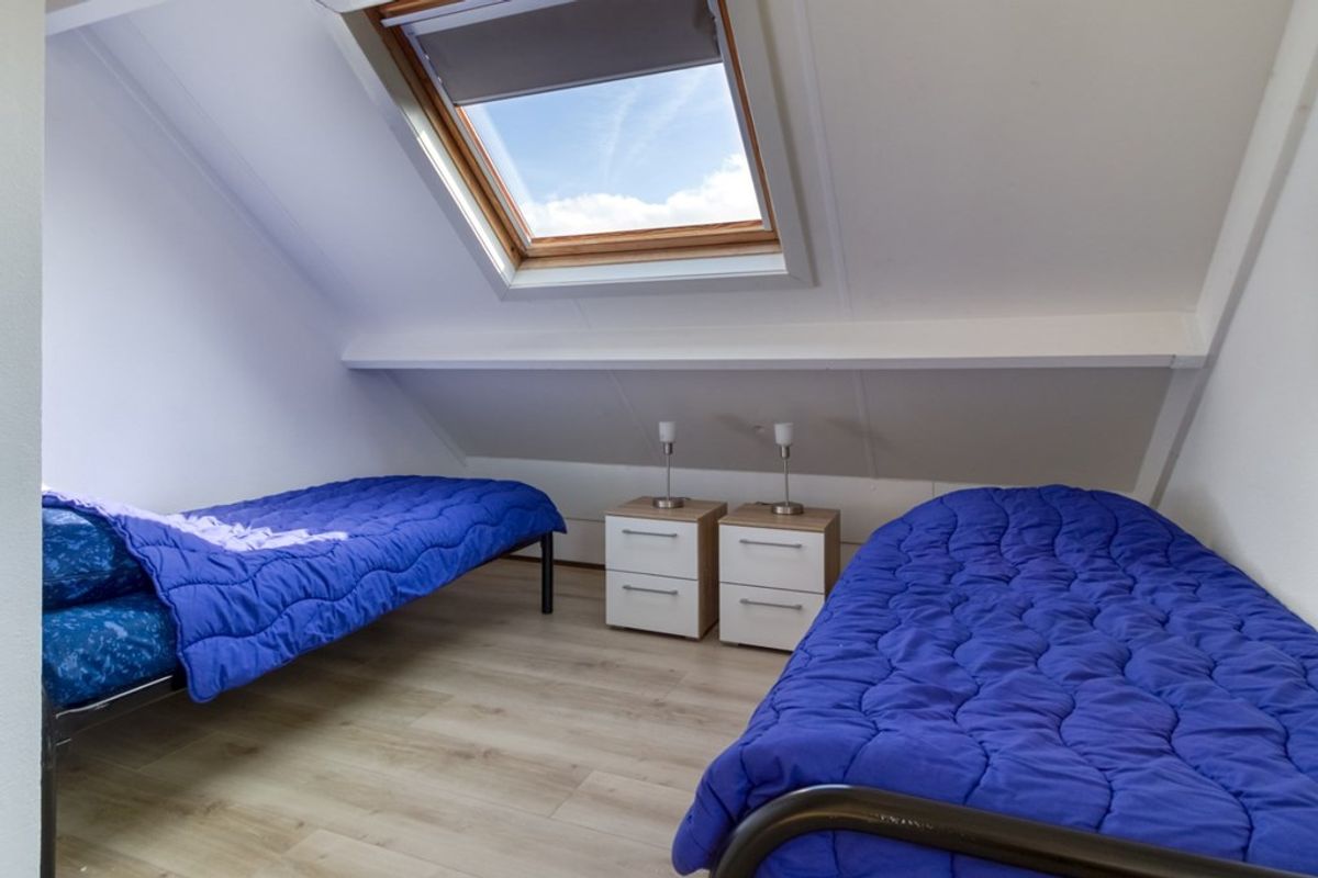 Overloop met toegang tot de twee royale slaapkamers. De beide slaapkamers gaan over de volledige breedte van de woning. Doordat de slaapkamers zo breed zijn is er ruimte om een 2e badkamer te realiseren. Reeds verschillende buurwoningen hebben dit gedaan en indien gewenst kunnen we hier voorbeelden van laten zien.
