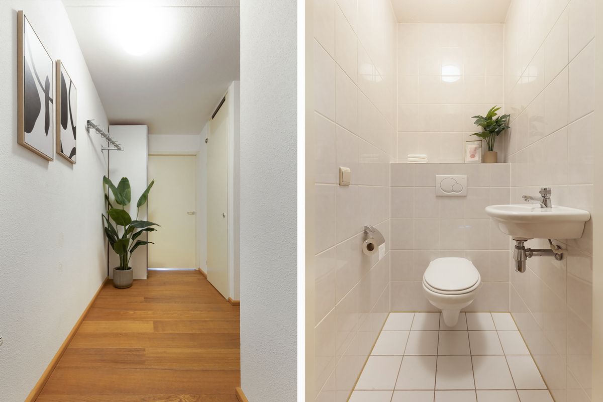Via de hal heb je toegang tot het toilet, de meterkast, berging, slaapkamer en het hart van het appartement: de lichte woonkamer. Door de hoekligging valt er extra veel daglicht naar binnen, wat de ruimte een open en uitnodigend karakter geeft. De woonkamer biedt genoeg plek voor een royale zithoek en eettafel, perfect om te ontspannen of gasten te ontvangen.
