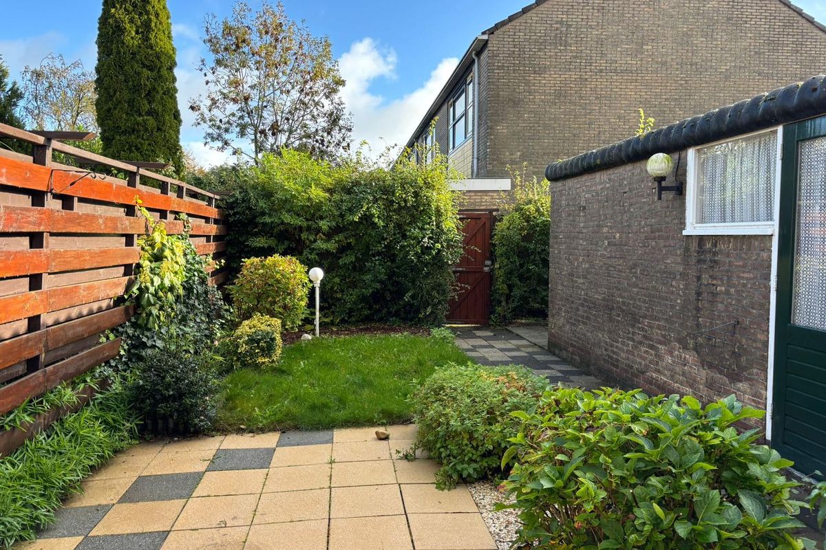 Tuin: Op het noordoosten gelegen met zonneterras, gazon, tuinberging met elektra en achterom.