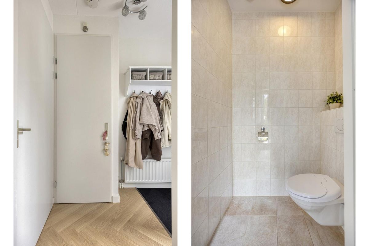 Je komt binnen in een gezellige hal met een apart toilet. Wat meteen in het oog springt, is de prachtige visgraatvloer die stijl en warmte uitstraalt. Een veelbelovende eerste indruk!