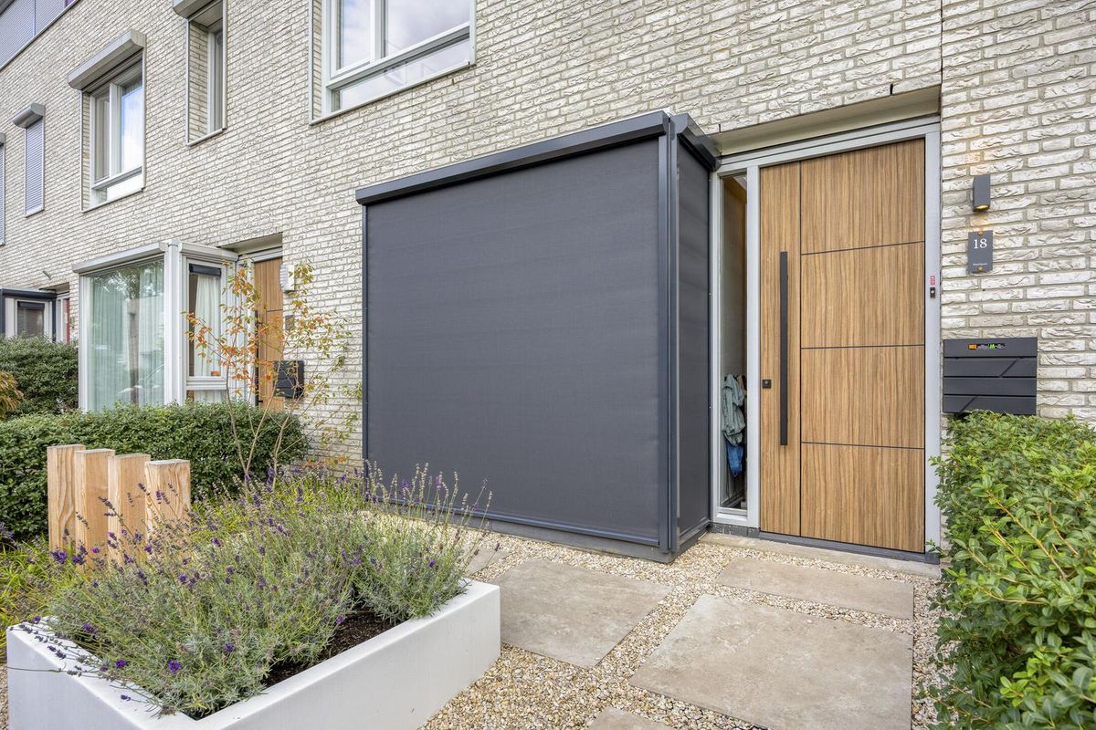 De achtertuin is fraai aangelegd en biedt echt een verlengstuk van je leefruimte. Met een fijne overkapping is dit de ideale plek voor een loungeset of buiteneethoek. Door de schuttingen geniet je hier volop van privacy. De combinatie van bestrating, gras en beplanting zorgt voor een gezellige, natuurlijke sfeer. Achterin de tuin, een paar treden lager, bevindt zich de berging – perfect voor fietsen en andere spullen.