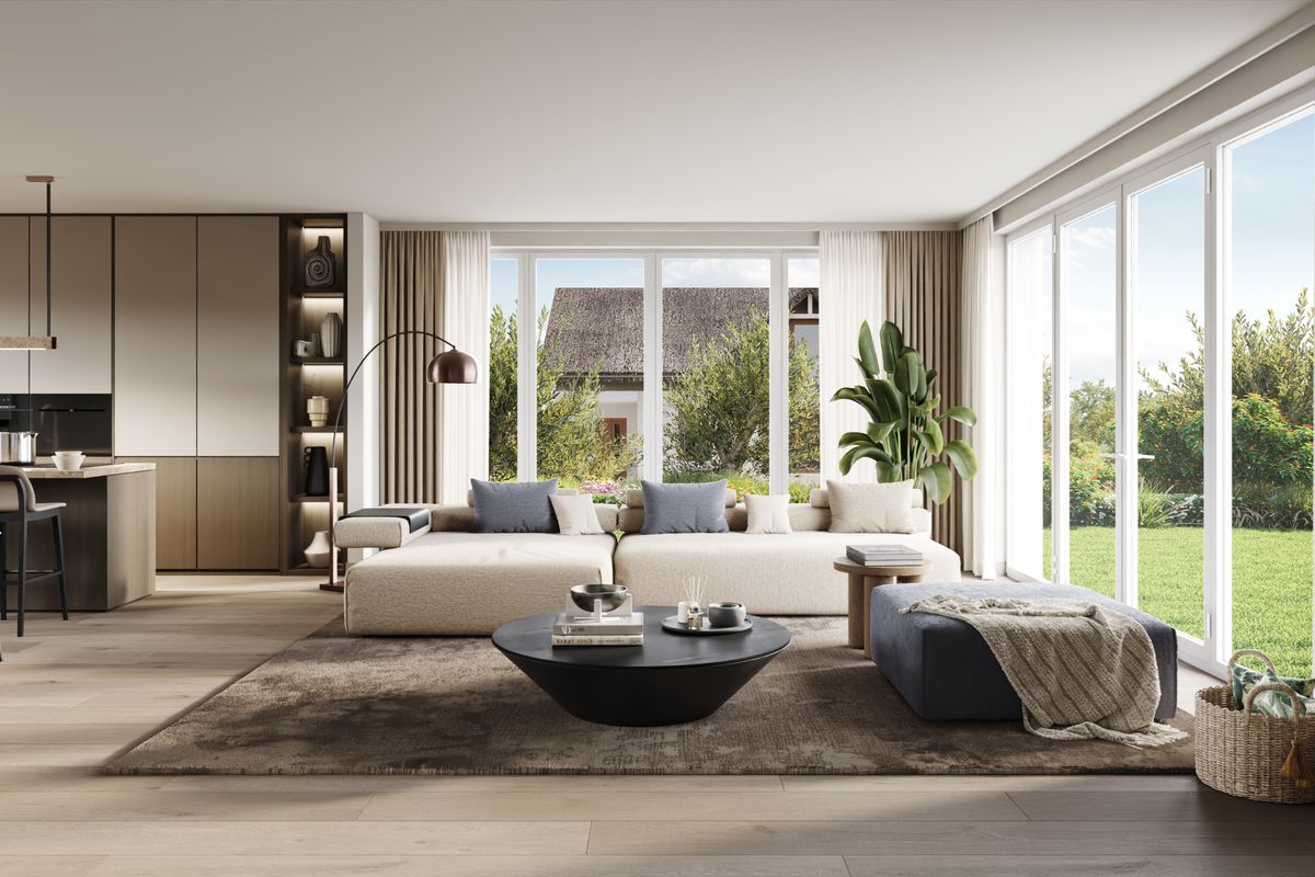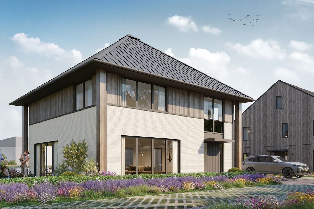“De hoeve setting van Buitenplaats Warande is geïnspireerd op de omgeving” vertelt architect Michel van Soolingen van Houweling Architecten. “We wilden aansluiten op de lintbebouwing eromheen en op de hoeve aan de overkant van de weg. Zo werd een hedendaags ontwerp met een landelijke uitstraling ons uitgangspunt. Een duurzaam ontwerp waarin we gebruikmaken van veel natuurlijke materialen. Dit ziet u terug in de houten zonwering, de klimbeplanting voor privacy en hittewering, waar mogelijk open bestrating en zowel nestkasten als streekeigen beplanting om de biodiversiteit te versterken.” Ook de ruimte op Buitenplaats Warande past bij landelijk wonen. “De woningen zijn groot en hebben een heerlijke tuin” vertelt Michel. “In combinatie met de boomgaard,de autoluwe straten en het water, ontstaat hier een vakantiegevoel. Het biophillic design principe, waarmee we buiten als het ware naar binnen trekken, maakt dat u straks ook in de woonkamer en keuken de verbinding voelt met uw omgeving. Daar kunt u in uw interieurontwerp op aansluiten, bijvoorbeeld met planten en houten