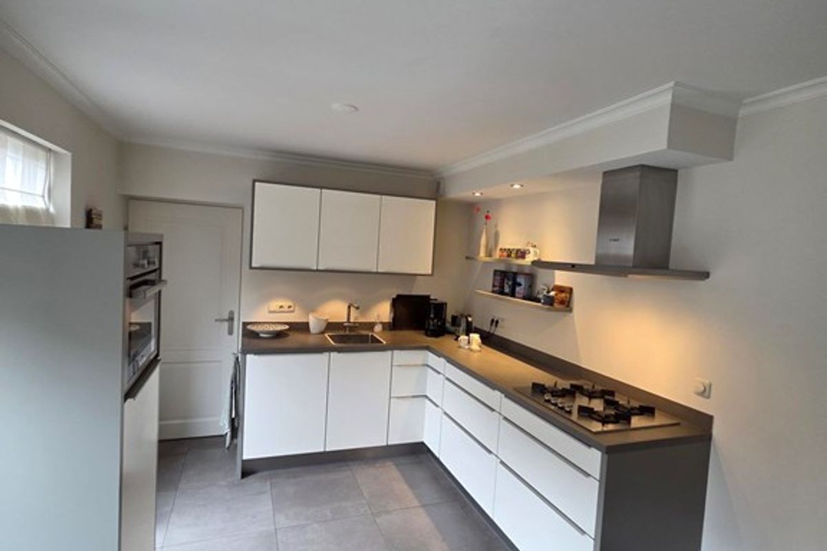 De prachtige grote woonkeuken is voorzien van diverse inbouwapparatuur en biedt volop werk en opbergruimte, ideaal voor kookliefhebbers en gezellige familiemomenten.