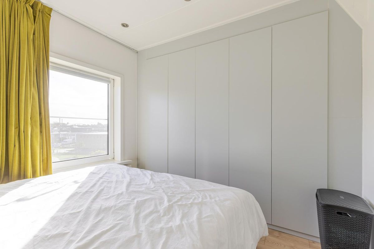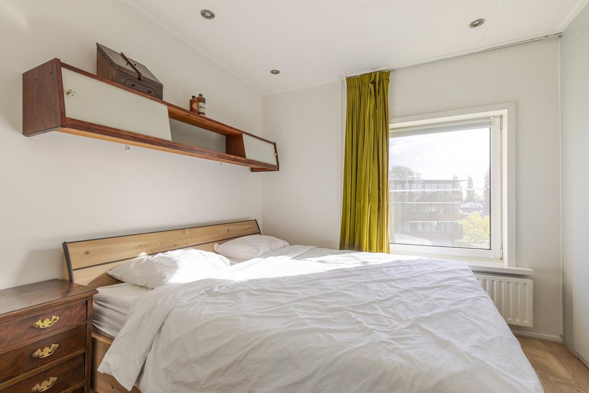 De slaapkamer aan de achterzijde is licht en rustig gelegen. Deze kamer beschikt over een groot raam, een vaste kast en voldoende ruimte voor een tweepersoonsbed en nachtkasten.
