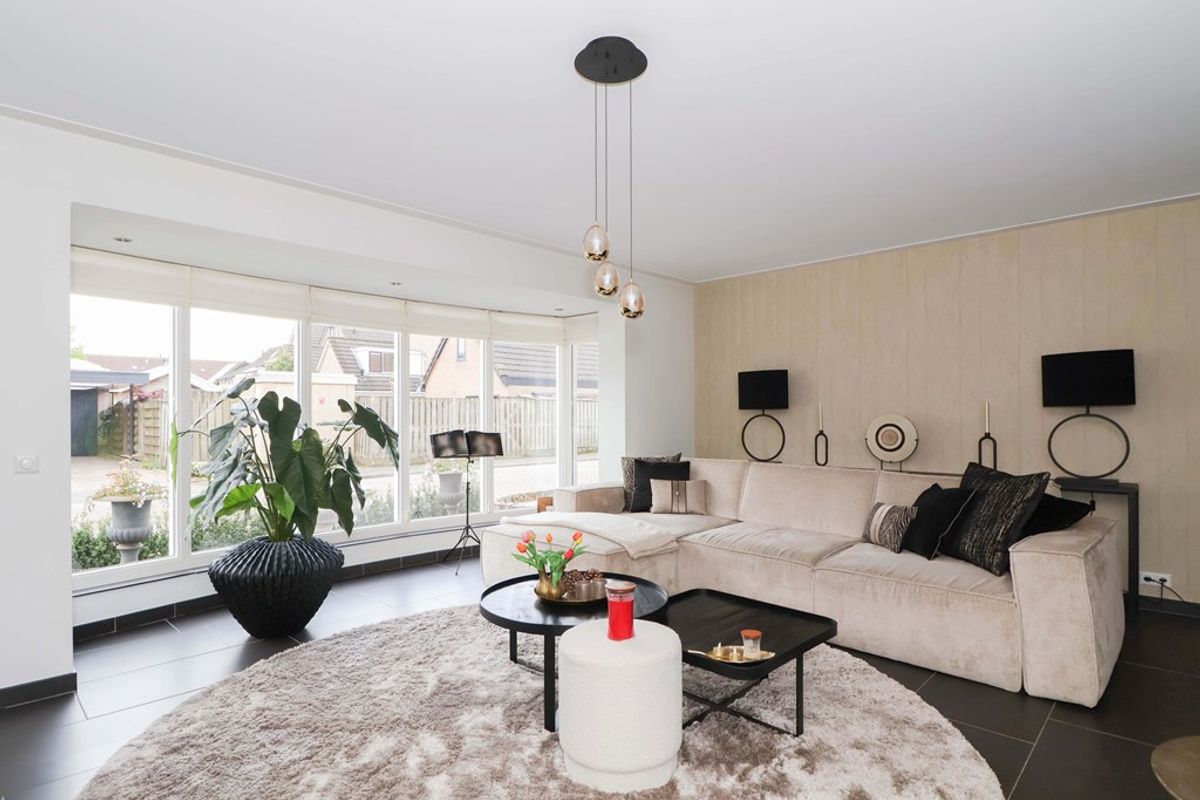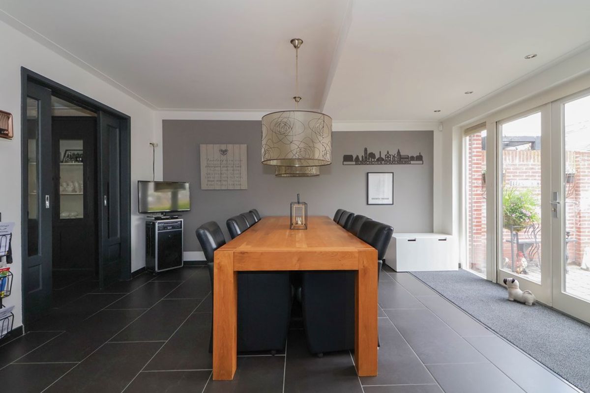 Woonkamer met serre aan de voorzijde. En suite deuren naar de woonkeuken.