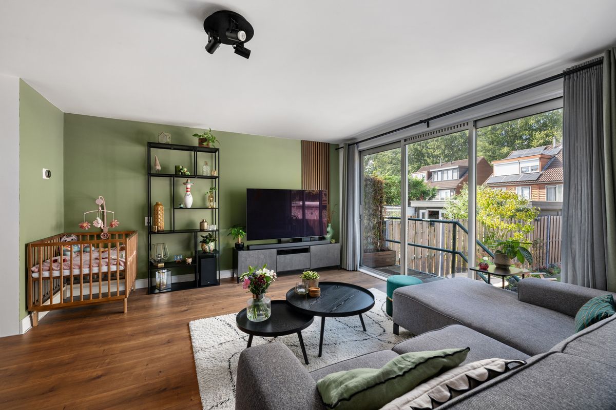 In de gezellige woonkamer zul je je snel thuis voelen. Er is ruimte voor een gezellig zitgedeelte en eetgedeelte in het verlengde van de keuken. Handige bergkast onder de trap.