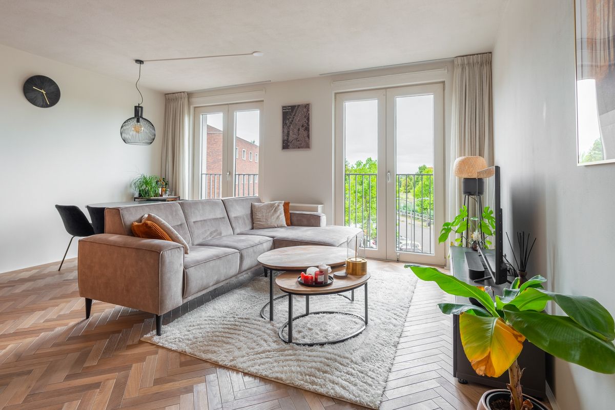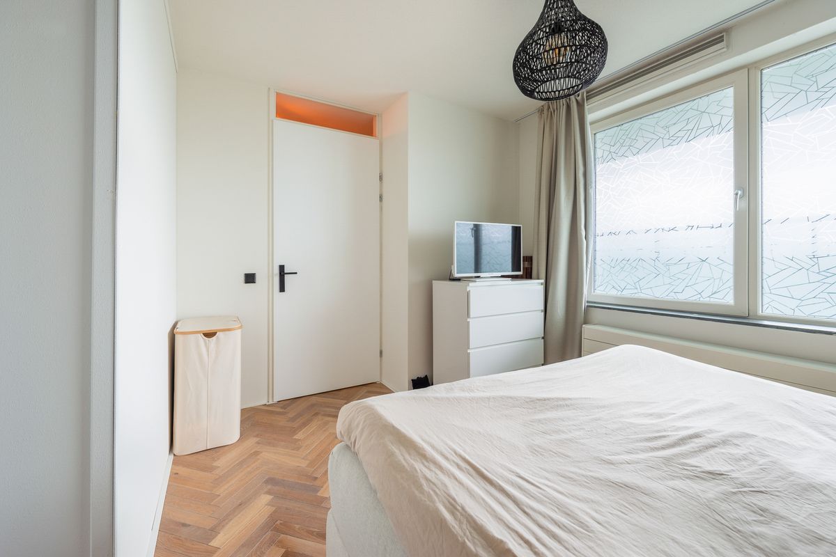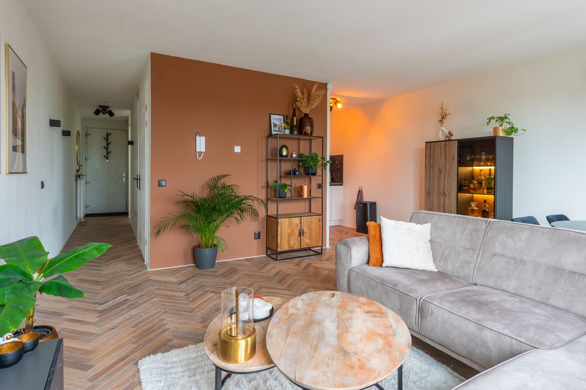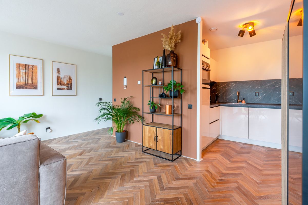 Zodra je de deur van nummer 106 binnenstapt, valt vooral het afwerkingsniveau en de rustige uitstraling op. Het appartement is in 2023 gemoderniseerd waarbij is gekozen voor een warme maar ook strakke stijl. Zo is de gehele woning (behalve de badkamer) voorzien van een fraaie in visgraatmotief gelegde houten lamelparketvloer.