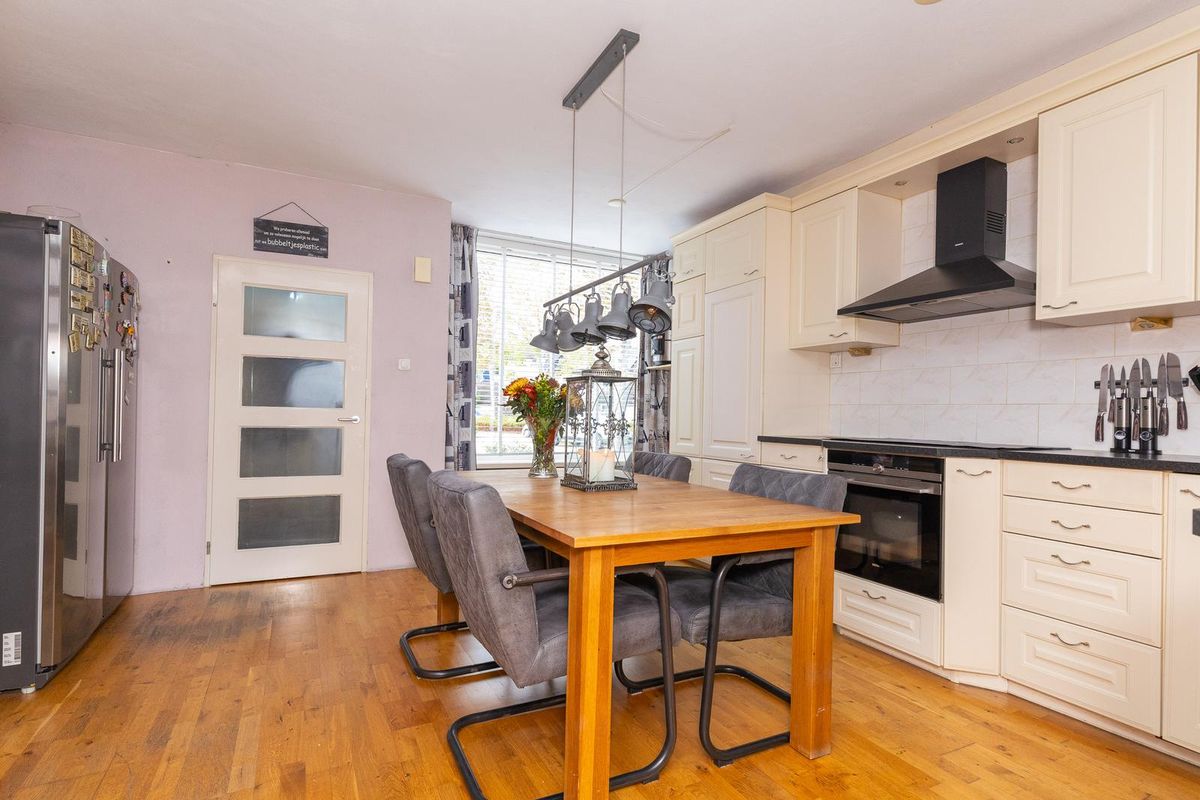 Bij binnenkomst valt direct de lichte, straatgerichte open woonkeuken op. Deze is voorzien van diverse recent vernieuwde inbouwapparatuur, waaronder een inductiekookplaat, combimagnetron met stoomfunctie en vaatwasser.