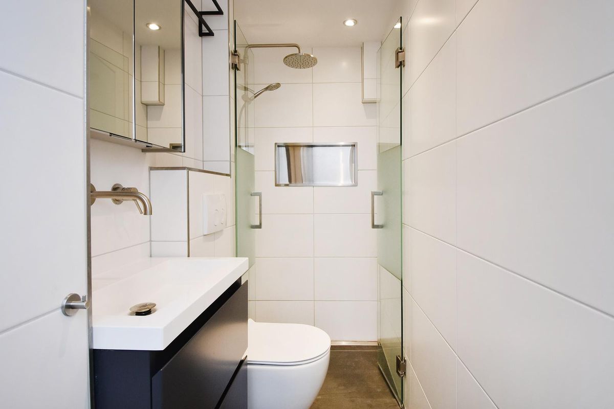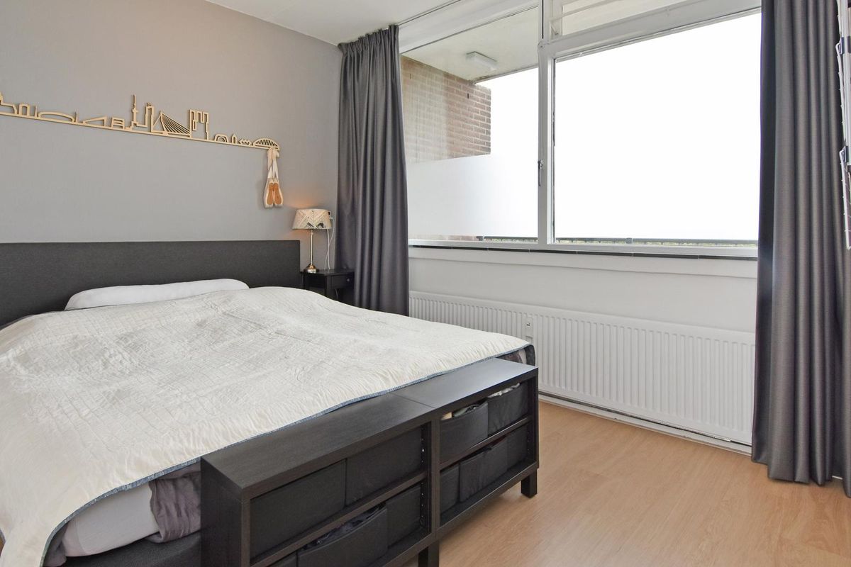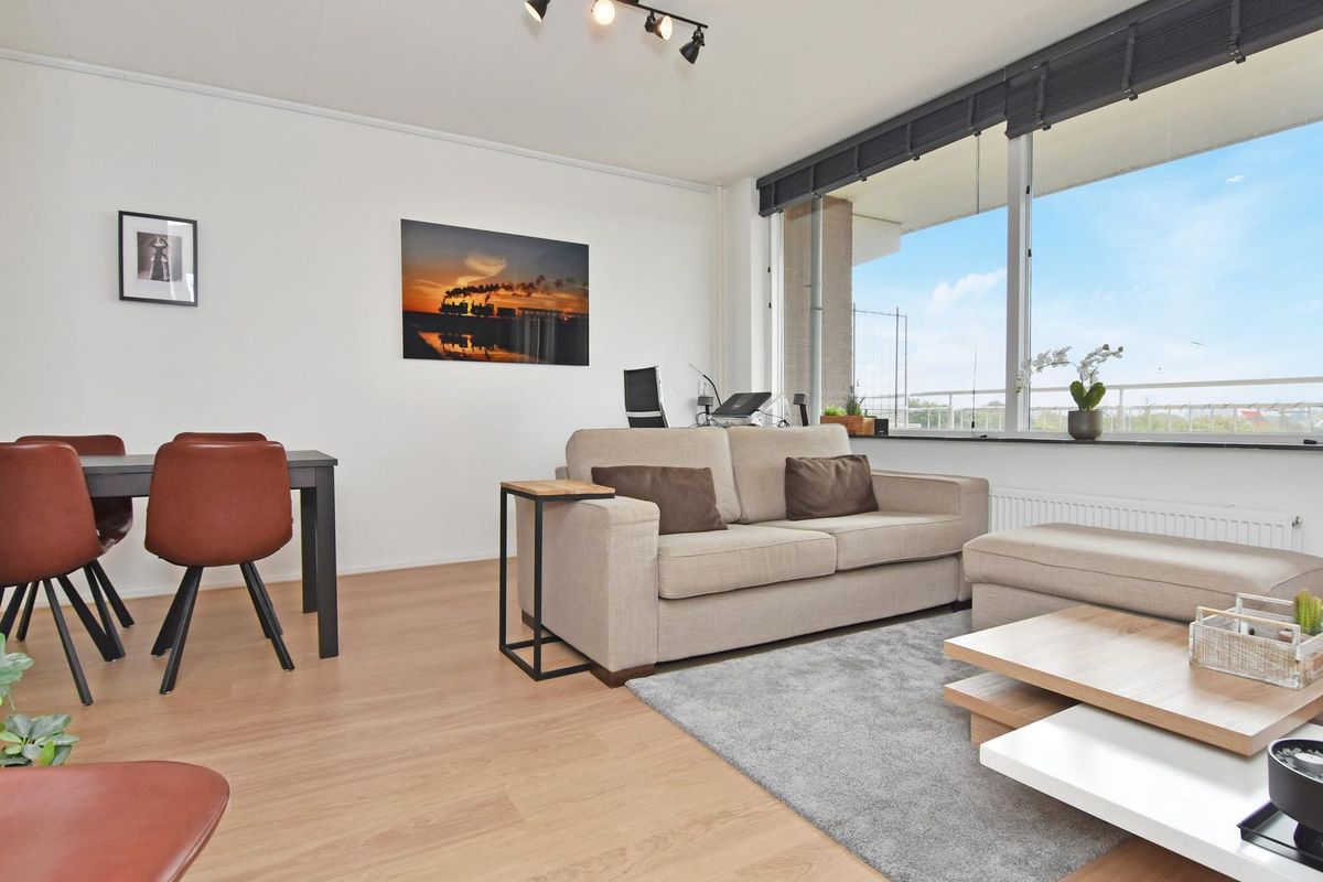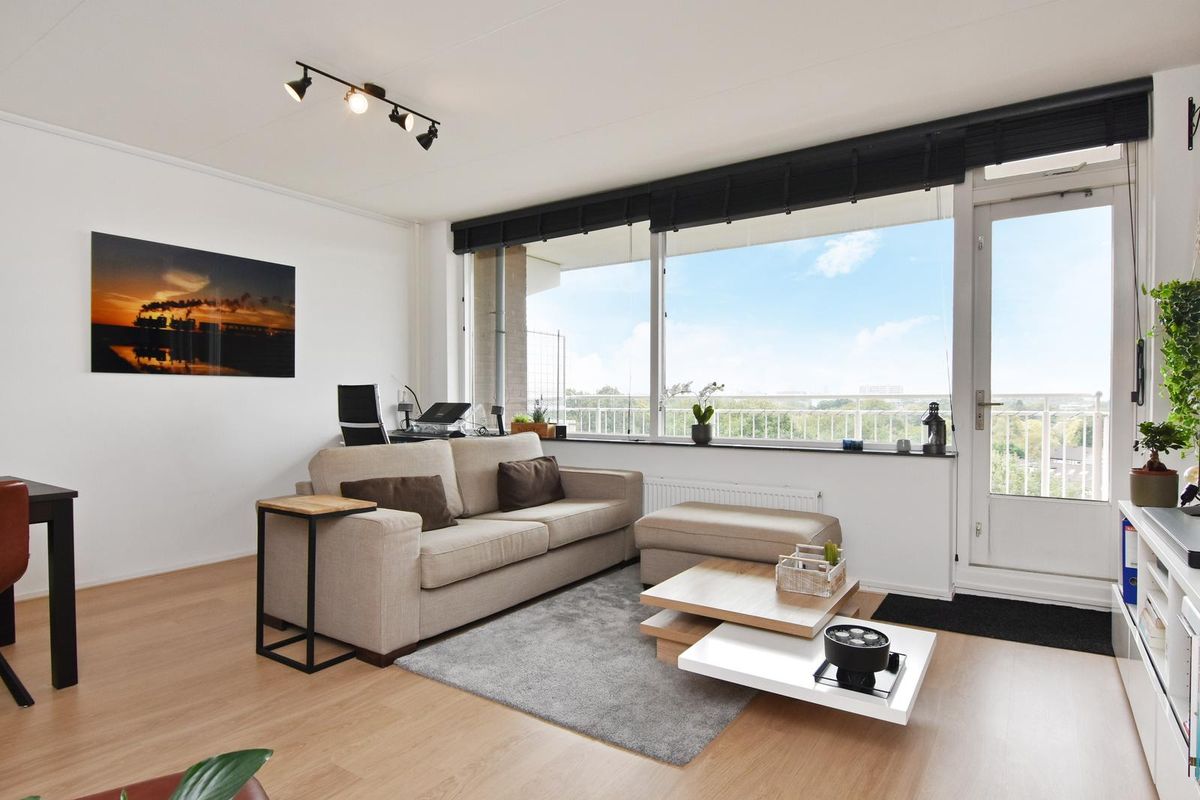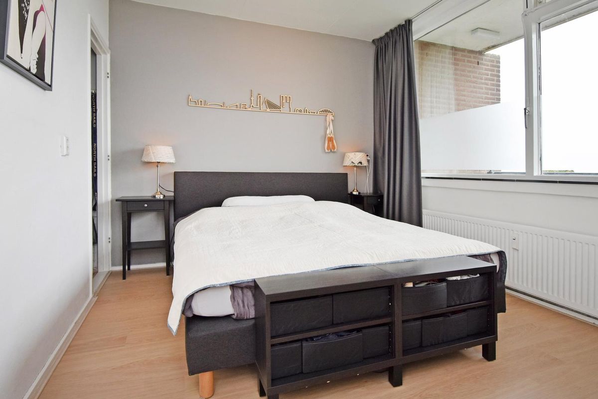 Entree appartement, ruime slaapkamer aan de voorzijde met vaste kast, gang met toegang tot de moderne luxe badkamer voorzien van inloopdouche, wastafelmeubel en modern vrijhangend toilet, woonkamer met semi open keuken voorzien van allerlei inbouwapparatuur wetende koel-/vriescombinatie, vaatwasser, oven, inductiekookplaat met afzuigkap en wasmachine opstelplaats, zonnig balkon (ZW) aan de achterzijde met uitzicht over fraai groen, water en de skyline van Den Haag.