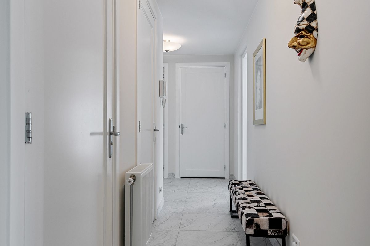 Na binnenkomst in de afgesloten centrale entree komt je bij de voordeur van het appartement. In deze entree vind je ook de trap en de lift van het complex, deze kun je gebruiken om bij de eigen parkeerplaats en de inpandige berging te komen.