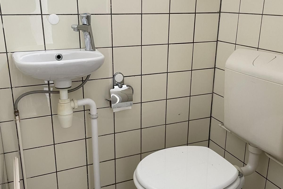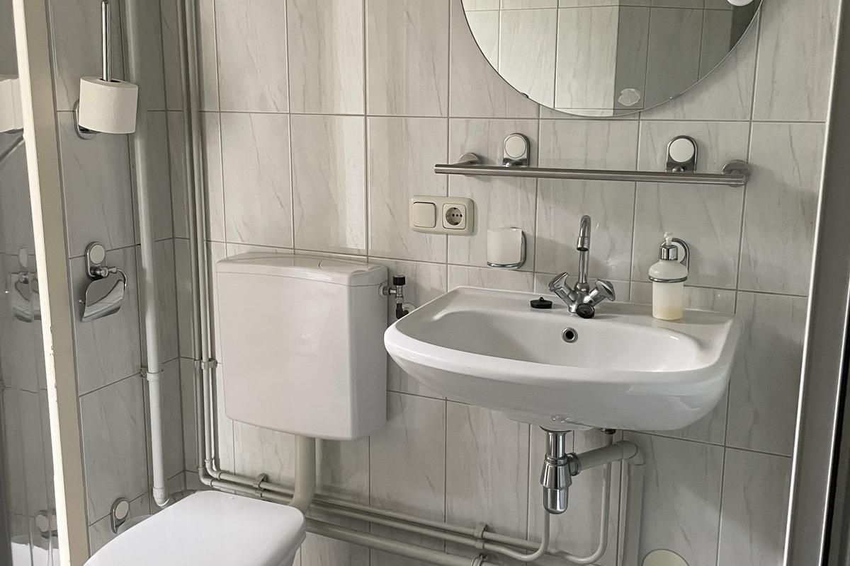 Overloop. Vanuit hier zijn de 3 slaapkamers en de badkamer bereikbaar. De badkamer is ingericht met een toilet, wastafel en douchehoek. Tevens bevindt zich hier de aansluiting voor het witgoed.