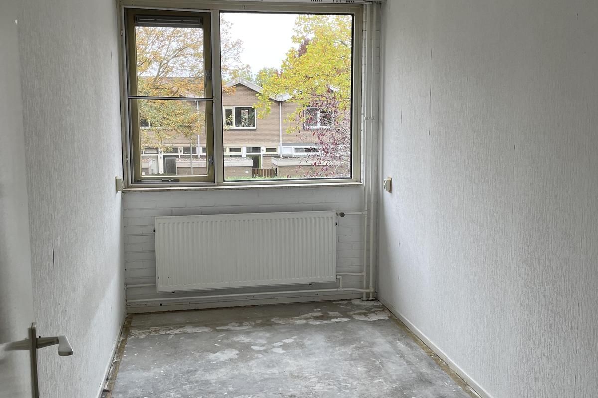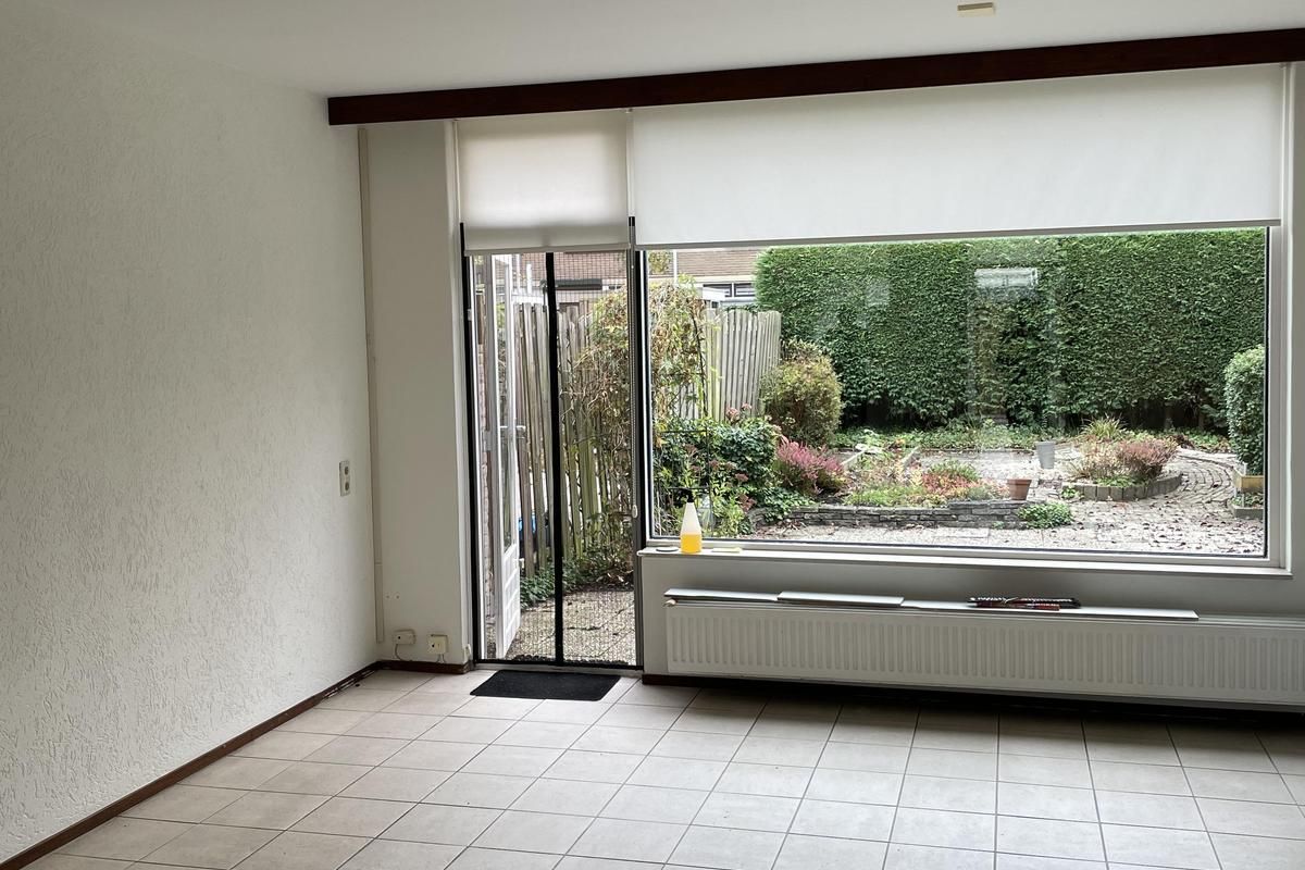 Lichte woonkamer door de grote raam aan de achterzijde en de loopdeur richting de achtertuin. Tevens is er vanuit de woonkamer toegang tot de trapkast. De half open keuken is ingericht met een vaatwasser, gasfornuis, afzuigkap en voldoende kastruimte.
