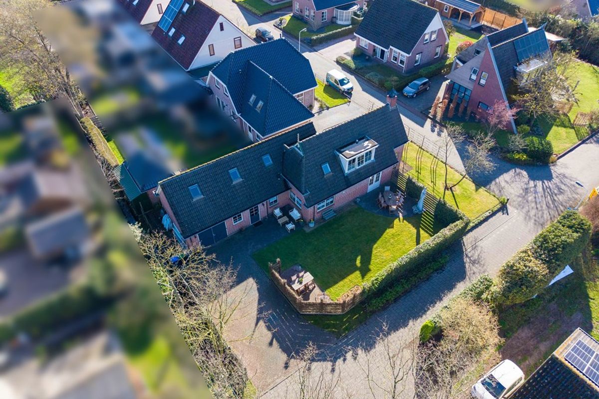 De garage is voorzien van dubbele deuren en biedt volop ruimte voor opslag of het stallen van fietsen of een voertuig. Direct ervoor ligt de ruime oprit met parkeergelegenheid op eigen terrein. De tuin rondom de woning biedt voldoende privacy en is ingericht met een gazon en zitgelegenheid op het zuidwesten.