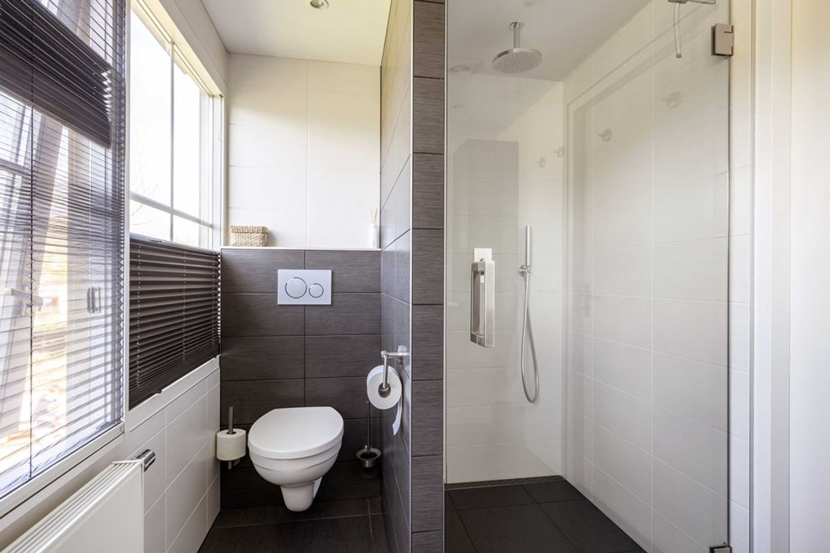 De eerste verdieping is praktisch ingedeeld met twee overlopen. Aan de voorzijde bevinden zich drie slaapkamers en een badkamer met dubbele wastafel, douche en toilet. Aan de achterzijde zijn nog eens twee slaapkamers gesitueerd. Hiermee biedt de verdieping in totaal vijf slaapkamers, welke via 2 trappen zijn te bereiken. Via een luik is een kleine vliering bereikbaar, geschikt voor extra bergruimte.