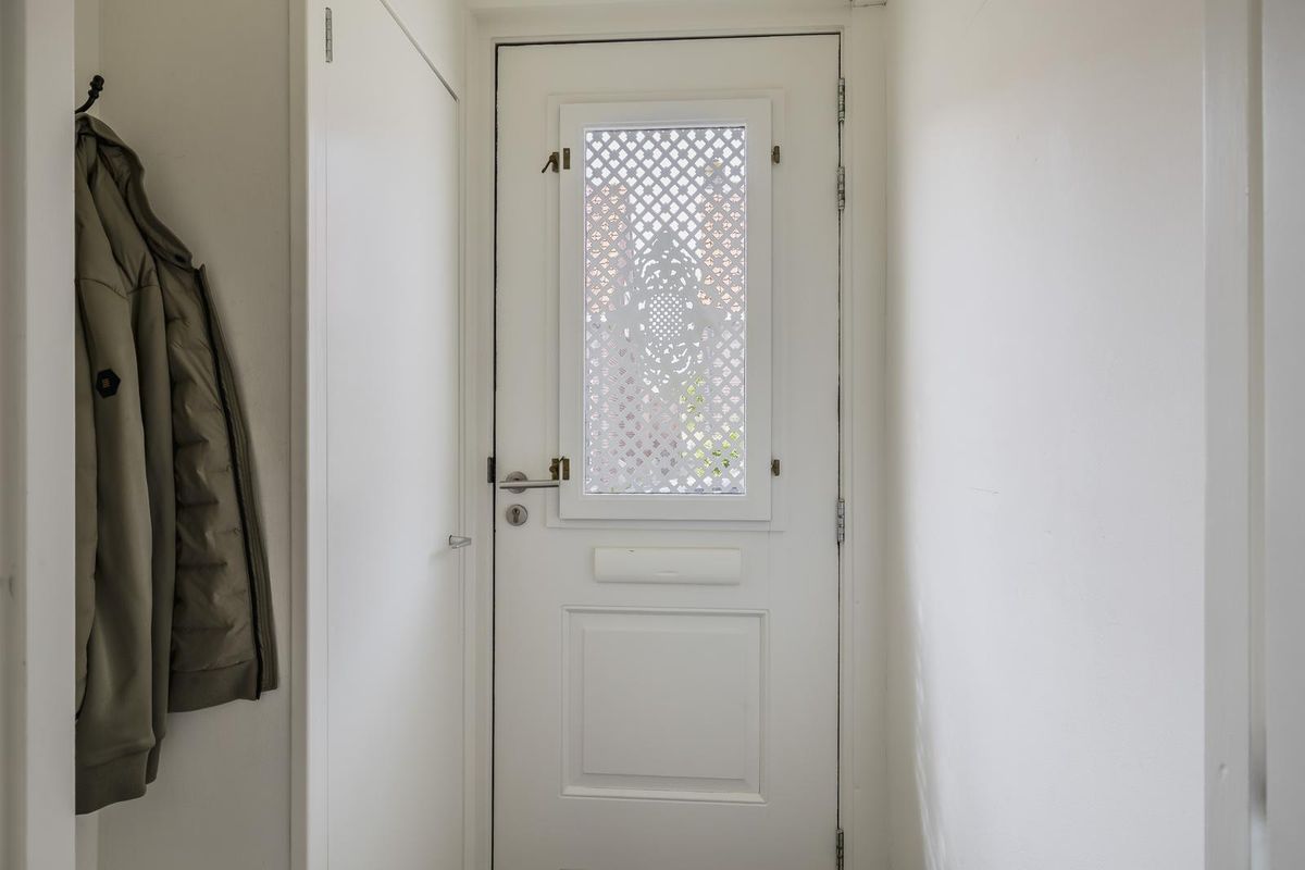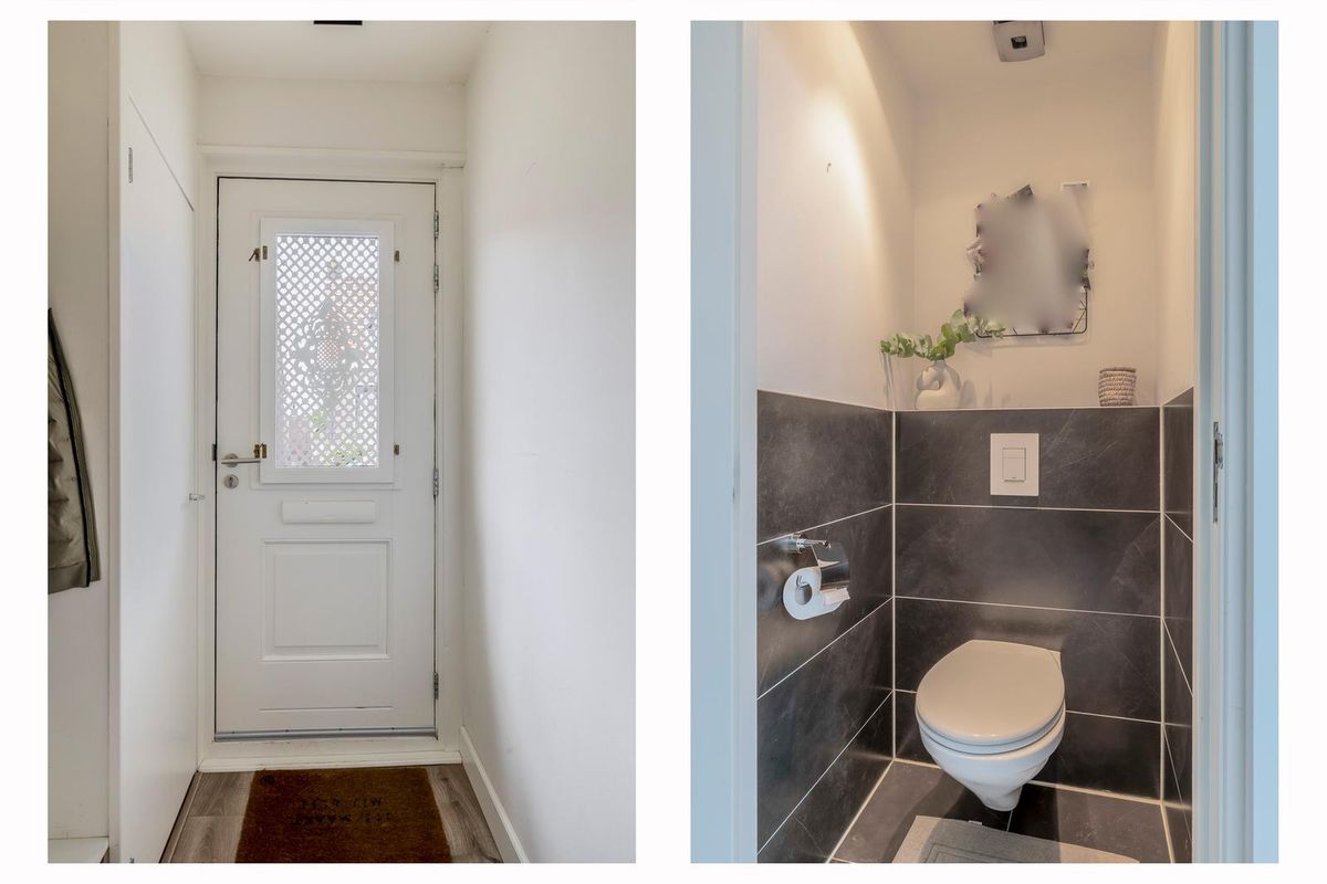 Bij binnenkomst treft u de hal met een nette laminaatvloer, voorzien van vloerverwarming. Deze vloer loopt door over de gehele begane grond, die volledig is uitgerust met vloerverwarming. In de hal bevinden zich de meterkast en een afgesloten deur naar de leefruimte.
