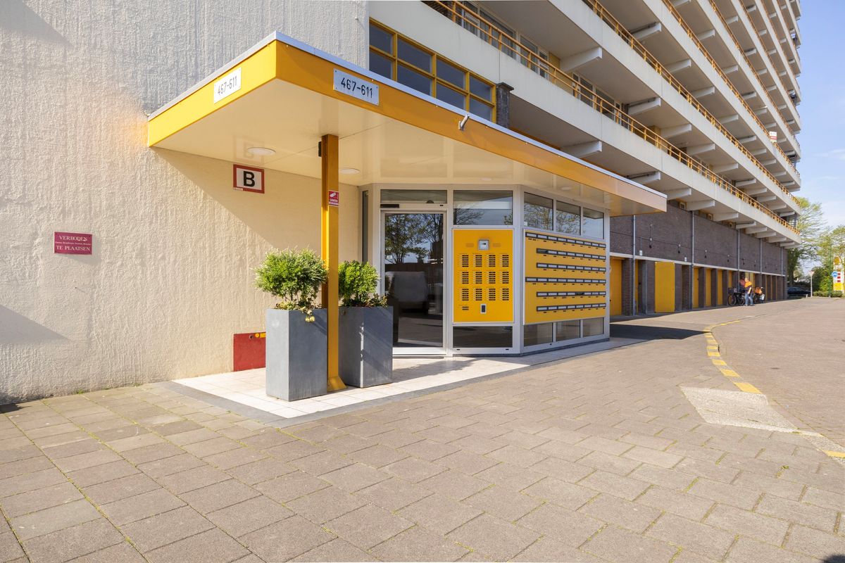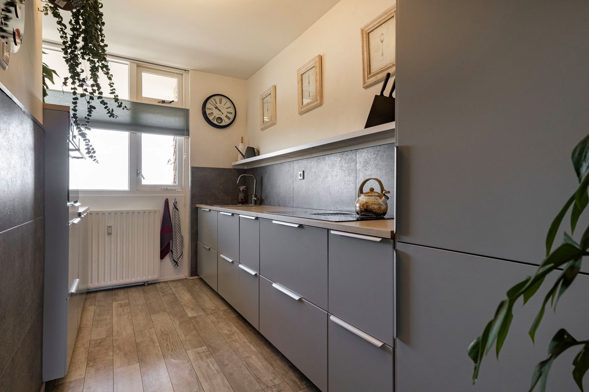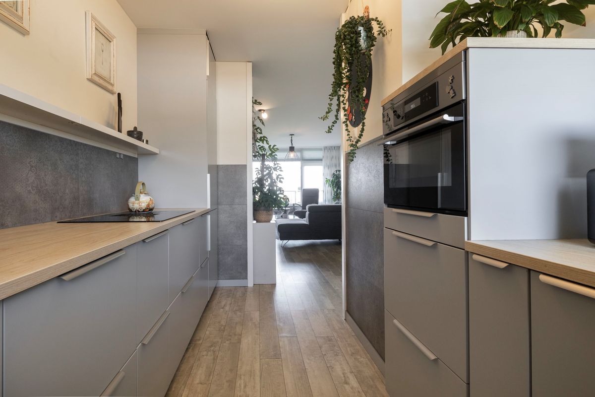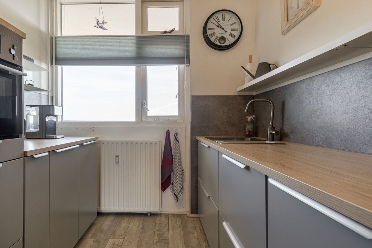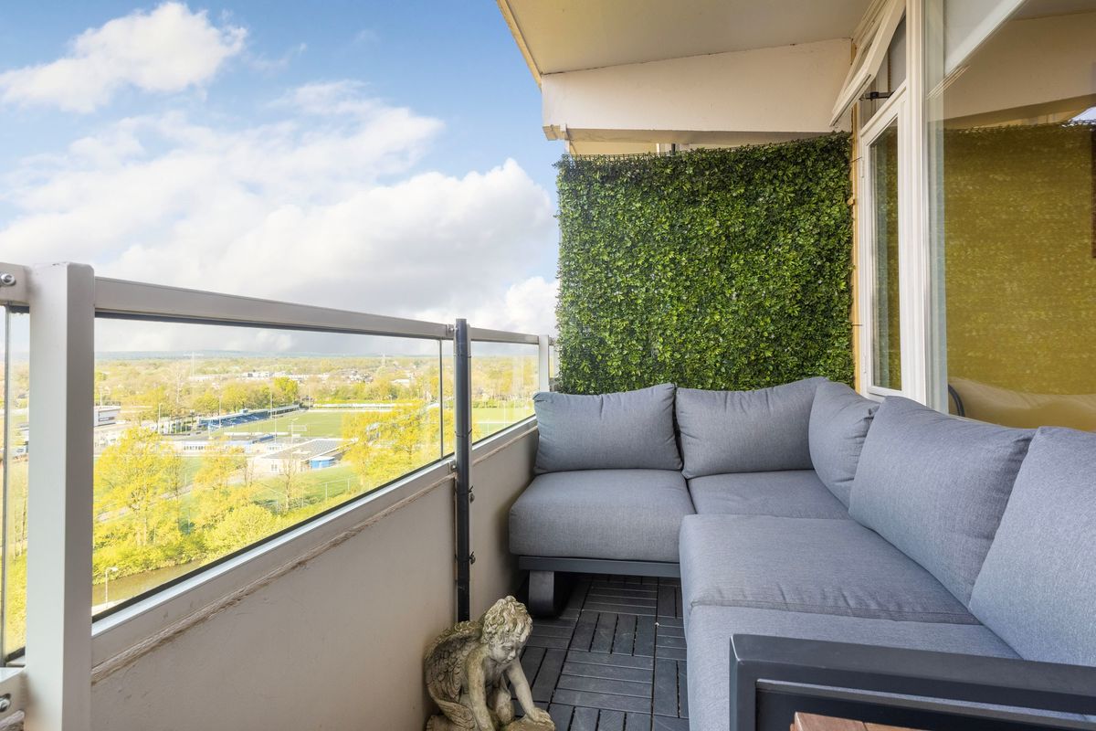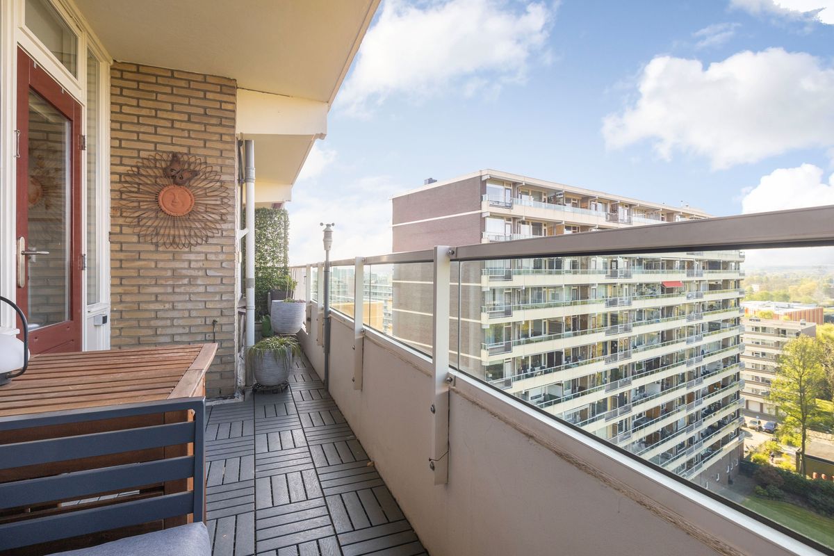 10e Verdieping: Ongeveer halverwege de galerij bevindt zich huisnummer 581. De voordeur staat vanzelfsprekend al open, dus we bekijken als eerste de hal. In deze hal zien we een praktische bergkast maar ook de meterkast. De groepenkast is in 2021 vernieuwd, evenals de elektrische bedrading. Lopen we verder dan staan we in de living. En dan wordt u stil, heel stil. Het panoramisch uitzicht wat u hier treft is niet onder woorden te brengen, dit moet u ervaren. De living heeft een zitgedeelte aan de balkonzijde, een eetgedeelte aan de galerijzijde. Vanuit het zitgedeelte is er een deur naar het balkon. Dit balkon meet maar liefst 12 m2 en ligt nog eens op het zuiden ook. Dat is niet alleen op het balkon aangenaam, het maakt de vertrekken van het appartement ook nog eens heerlijk licht. Zeker in periodes zoals de winter. Weer terug in het appartement bekijken we de eveneens in 2021 vernieuwde keuken. Deze keuken met beige fronten heeft een dubbele opstelling. Aan inbouwapparatuur is er aanwezig een inductiekookplaat met werkbladafzuiging, een vaatwasser, een koelkast, een vriezer, een combi-oven en een plintboiler. Diverse lades zijn uitgevoerd met een praktische binnen-lade. Vanuit de eetkamer is er een deur naar een slaap-/werkkamer. Ook geeft de eetkamer toegang tot een gang met meerdere deuren. Allereerst naar de enkele jaren geleden gemoderniseerde badkamer die een ruime inloopdouche met regendouche en een dubbele wastafel met wastafelmeubel heeft. Een deur verder geeft toegang tot het toilet, en achter nog weer een deur verder is de wasmachine aangesloten. In deze ruimte is ook de boiler (2021, eigendom) opgesteld en dan nog is er meer dan voldoende bergruimte over. Tenslotte resteren twee slaapkamers waarvan één met een deur naar het balkon.