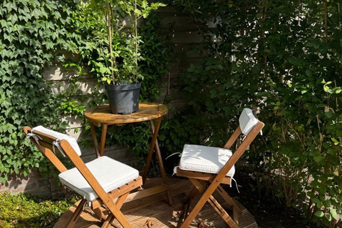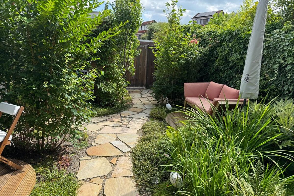 De achtertuin is een groene oase met zitjes, mooie beplanting en een achterom. Daarnaast is er een ruime schuur, perfect voor fietsen en extra opslag.