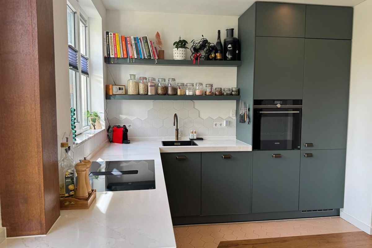 Bij binnenkomst stap je in een ruime hal met gastentoilet, die leidt naar een royale woonkamer met grote raampartijen en een open keuken. De houten vloeren ademen warmte uit, terwijl de moderne keuken met ingebouwde apparatuur, veel bergruimte en designmeubilair een lust voor het oog én het gebruik is. Vanuit het eetgedeelte heb je een fijn uitzicht op de zonnige achtertuin, voorzien van hordeur en sfeervolle raambekleding.