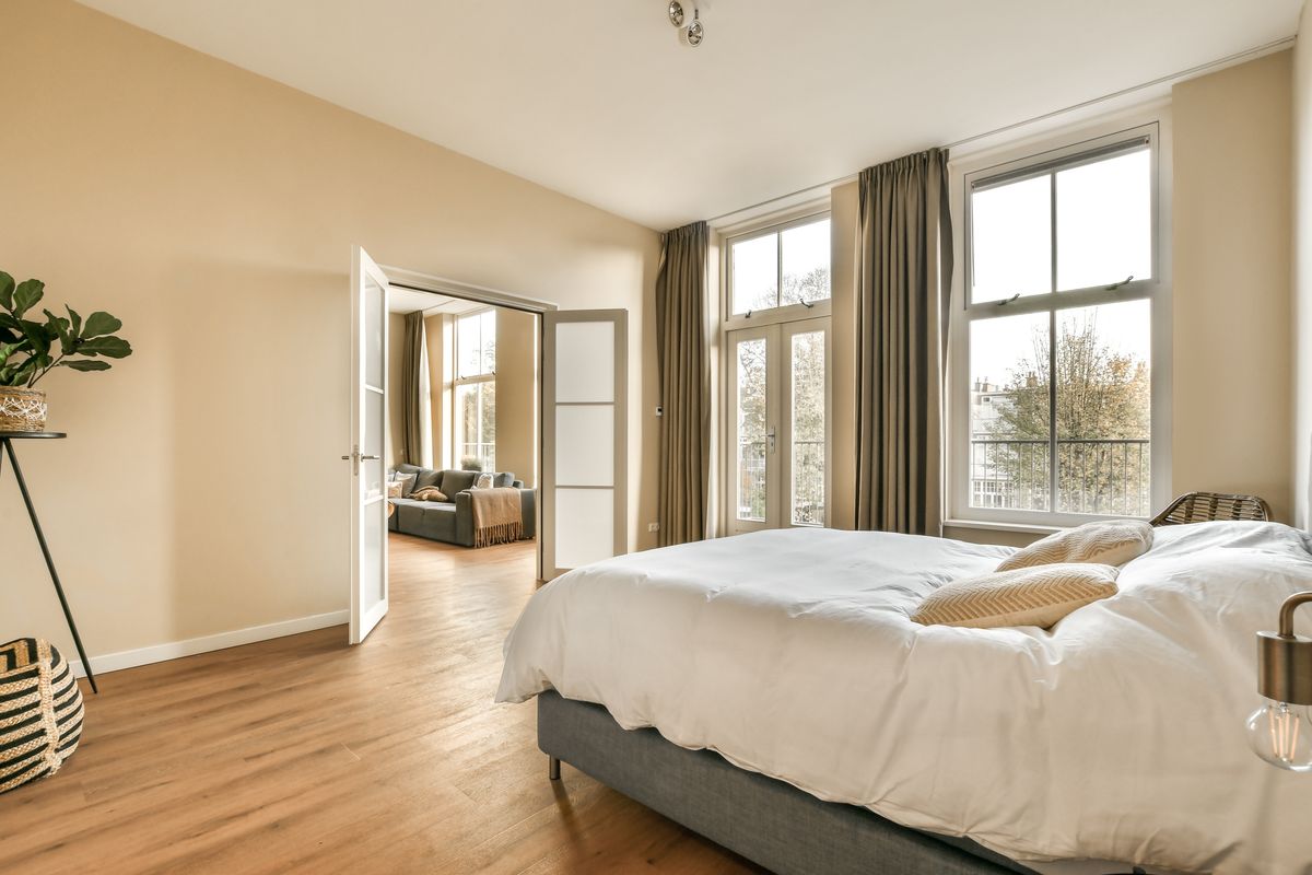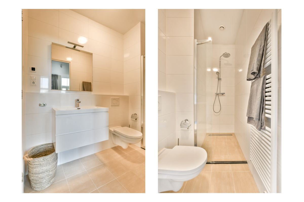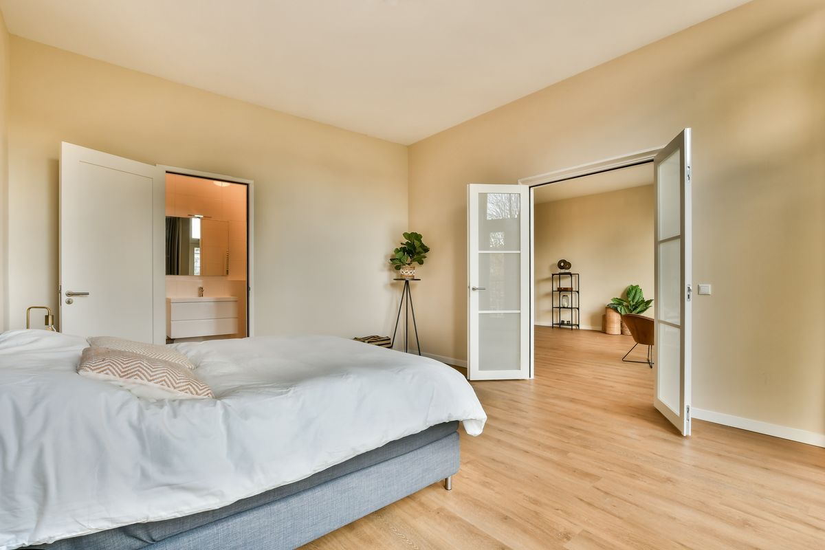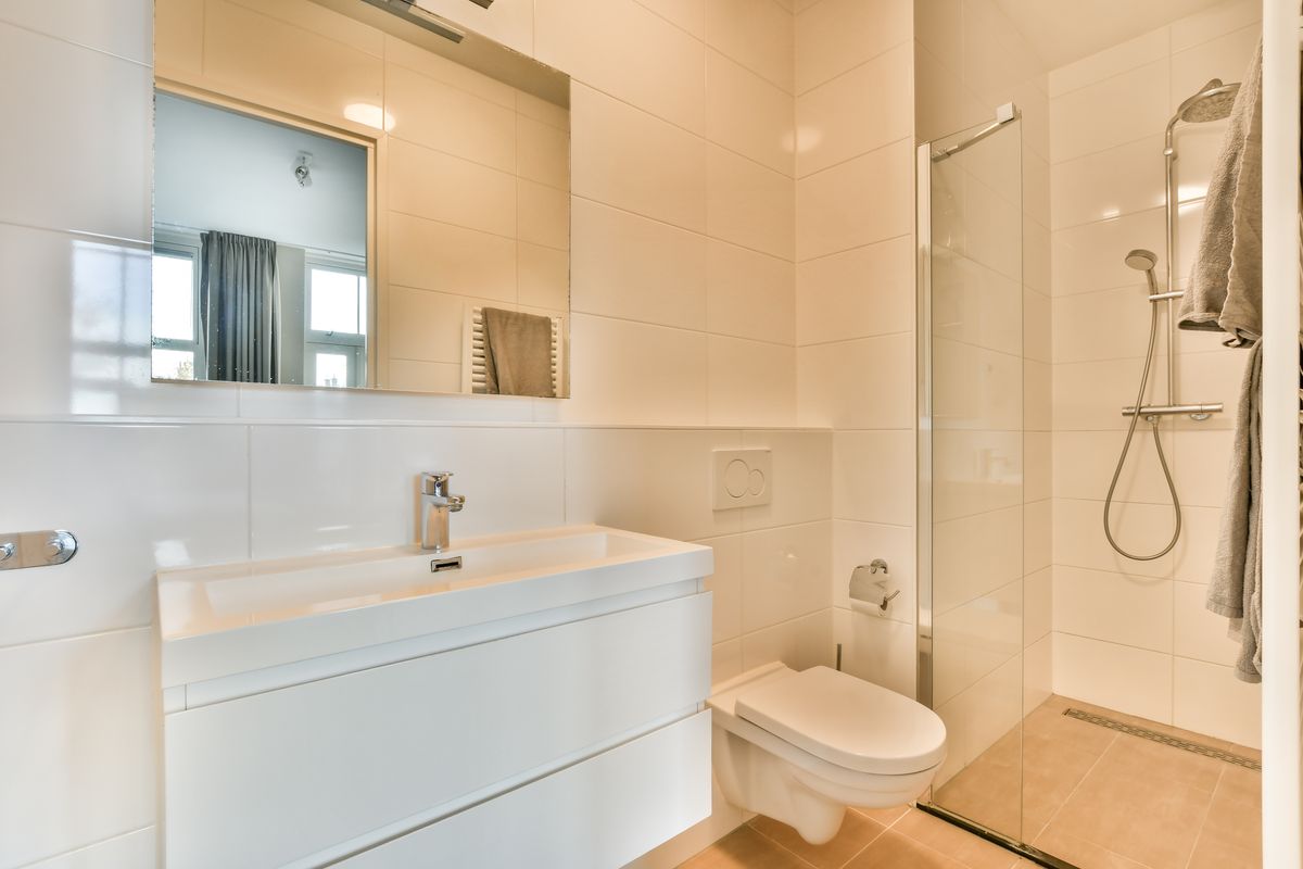 Grenzend aan de woonkamer ligt de slaapkamer, met voldoende ruimte voor een tweepersoonsbed en kastruimte. Vanuit de slaapkamer heb je direct toegang tot het balkon, dat gelegen is op het noordwesten, waar je heerlijk buiten kunt zitten. De badkamer, bereikbaar vanuit de slaapkamer, is luxe afgewerkt met een ruime inloopdouche voorzien van en regendouche, een strak wastafelmeubel met spiegelkast, een designradiator en aansluiting voor een wasmachine en droger.