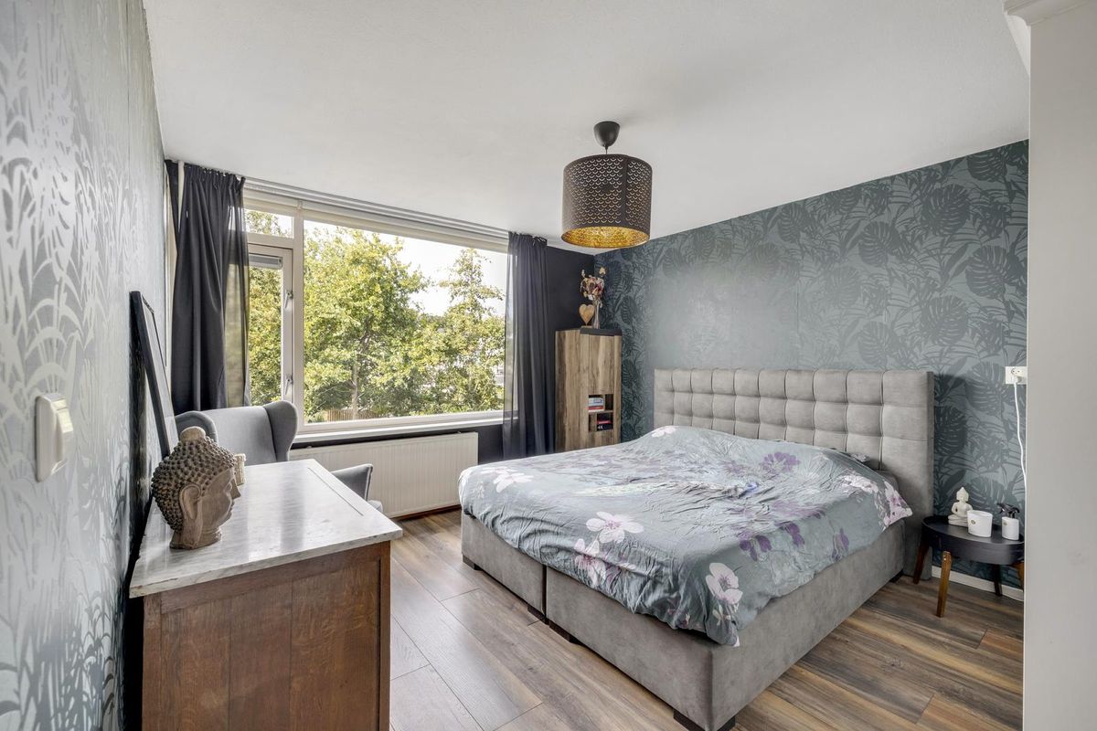 Deze ruime slaapkamer bevindt zich aan de voorzijde van de woning en is voorzien van laminaat.
