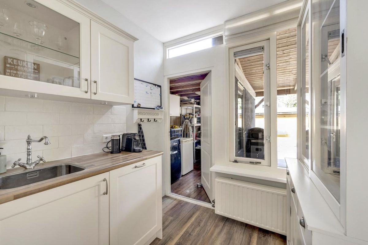 Via de keuken is er direct toegang tot de bijkeuken. De praktische bijkeuken is v.v. elektra, daglicht en deur naar de tuin.