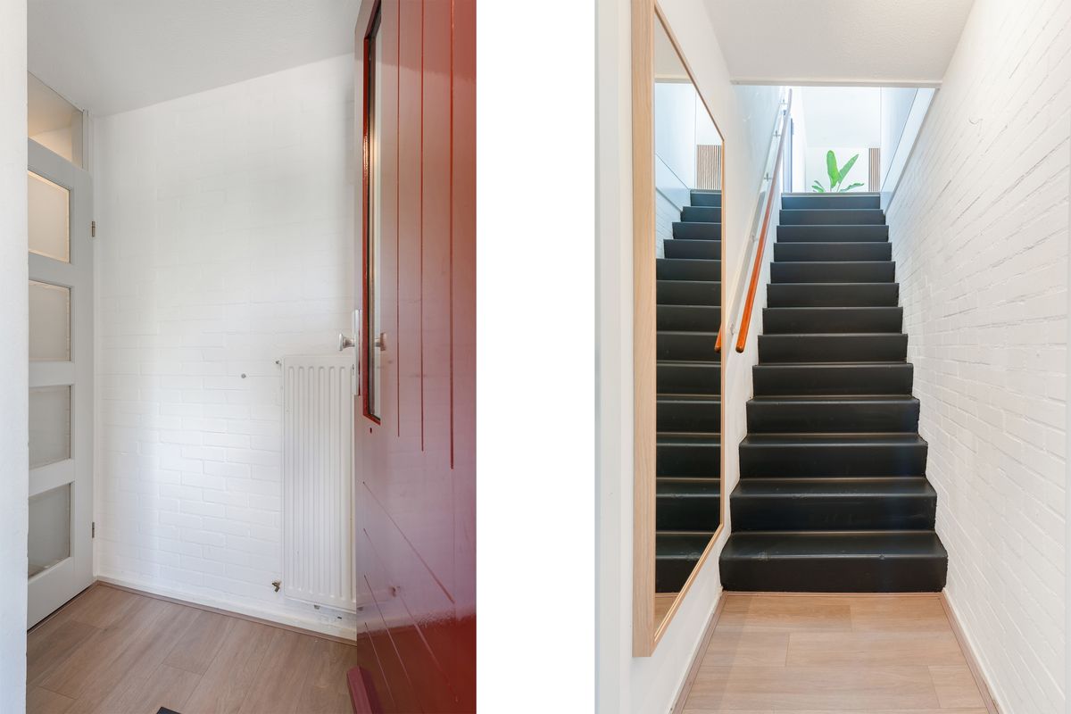 De entree van de woning bevindt zich op de eerste verdieping van het complex. Via een vaste trap kom je op de tweede verdieping.