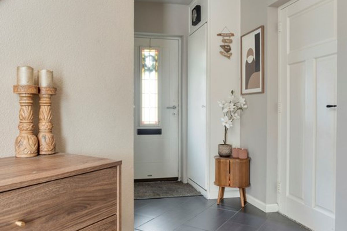 Via de verkeersluwe straat komt u bij het ruime perceel waar u kunt parkeren in de garage of op de eigen parkeerplaats waar u uitstapt in de ruime voortuin met fraai uitzicht over de groene polder. U stapt hier binnen in de lichte hal waar u de garderobe vindt, de meterkast, een nette toiletruimte, de trapopgang naar de 1e verdieping en de toegang naar de inpandige garage.