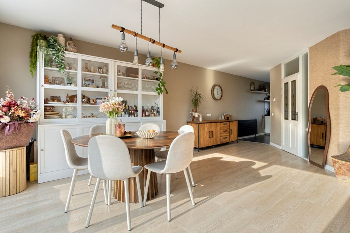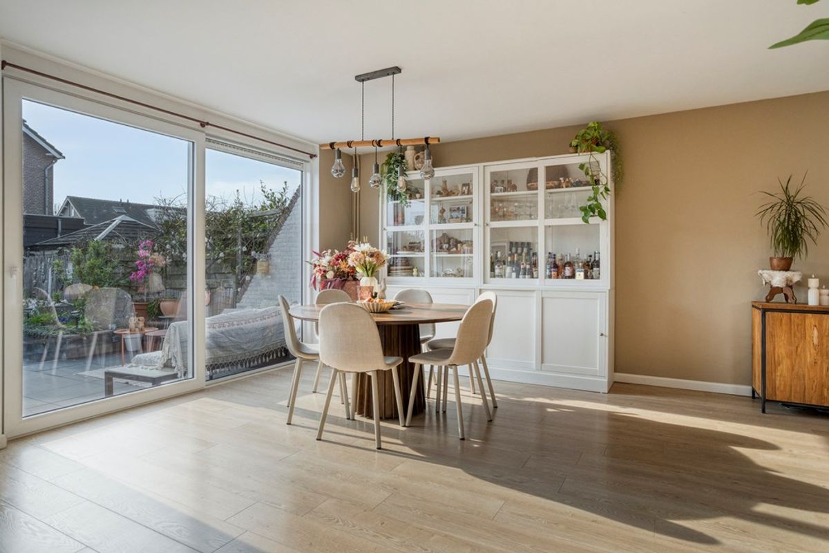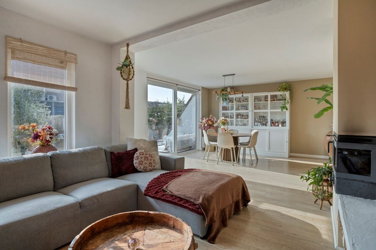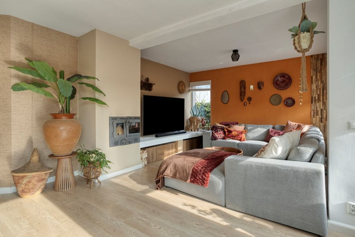 Vanuit de hal komt u in de ruime lichte woonkamer waar u direct zicht heeft op de achtertuin door de grote glazen schuifpui. De kamer is voorzien van nette wanden en plafonds en beschikt net de rest van de benedenverdieping over vloerverwarming. Voor extra sfeer en warmte kunt u gebruik maken van de sfeervolle houtkachel. De half open keuken vindt u aan de voorzijde. Deze is uitgevoerd in een klassiek landelijke stijl met veel werkruimte op het fraaie keukenblad, veel bergruimte en ingericht met diverse moderne apparatuur. Extra bergruimte vindt u in de grote inpandige garage welke vanuit de gang te bereiken is.