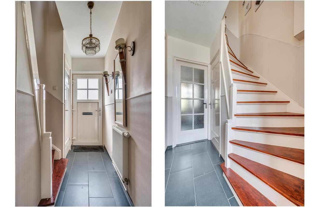 Middels een beklinkerd looppad is de entree van de woning te bereiken. De hal geeft toegang tot de toiletruimte, trapopgang naar de verdieping, trapopgang naar de kelder en loopdeur naar de keuken.