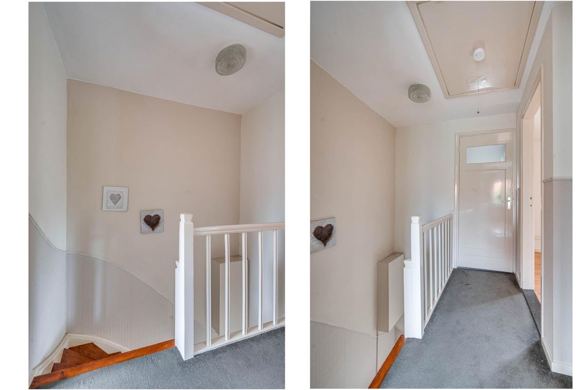 De overloop geeft toegang tot 3 slaapkamers, de badkamer en vlizotrap naar de zolder. Alle 3 de slaapkamers zijn voorzien van rolluiken en een laminaatvloer. De badkamer is functioneel ingericht met een douche, wastafel met meubel en buitenraam. De badkamer is geheel betegeld en voorzien van een buitenraam.