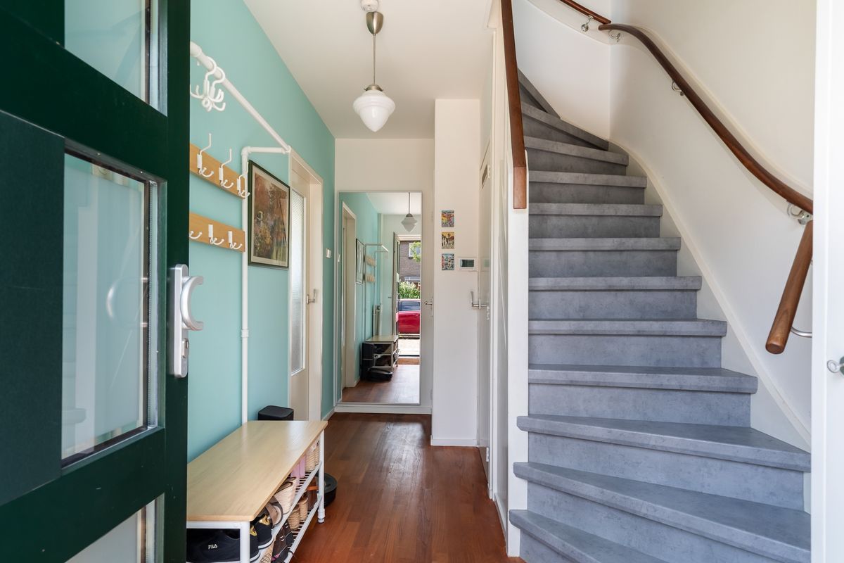 Hal (1.76 x 4.27m) U komt binnen door de onlangs vernieuwde kunststof voordeur en pui in de ruime hal met meterkast (moderne schakelkast met 10 groepen en een glasvezelaansluiting), toiletruimte, ruime kelderkast en de trap naar de 1e verdieping.