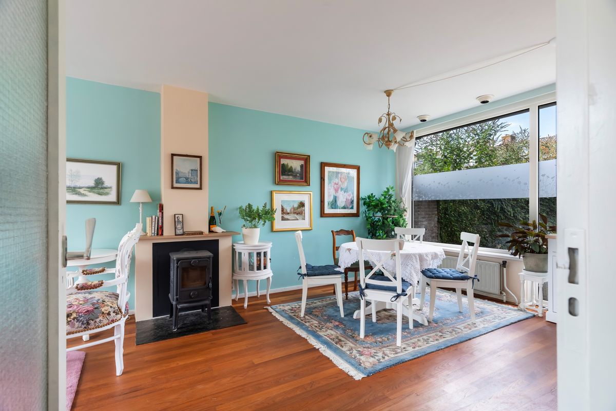 Woonkamer (7.03 x 3.66m) De royale woonkamer is van het type ‘doorzon’ en is mooi afgewerkt met een parketvloer (tropisch hardhout) en stucwerk op de wanden. Verder heeft u de beschikking over een aangename houtkachel.