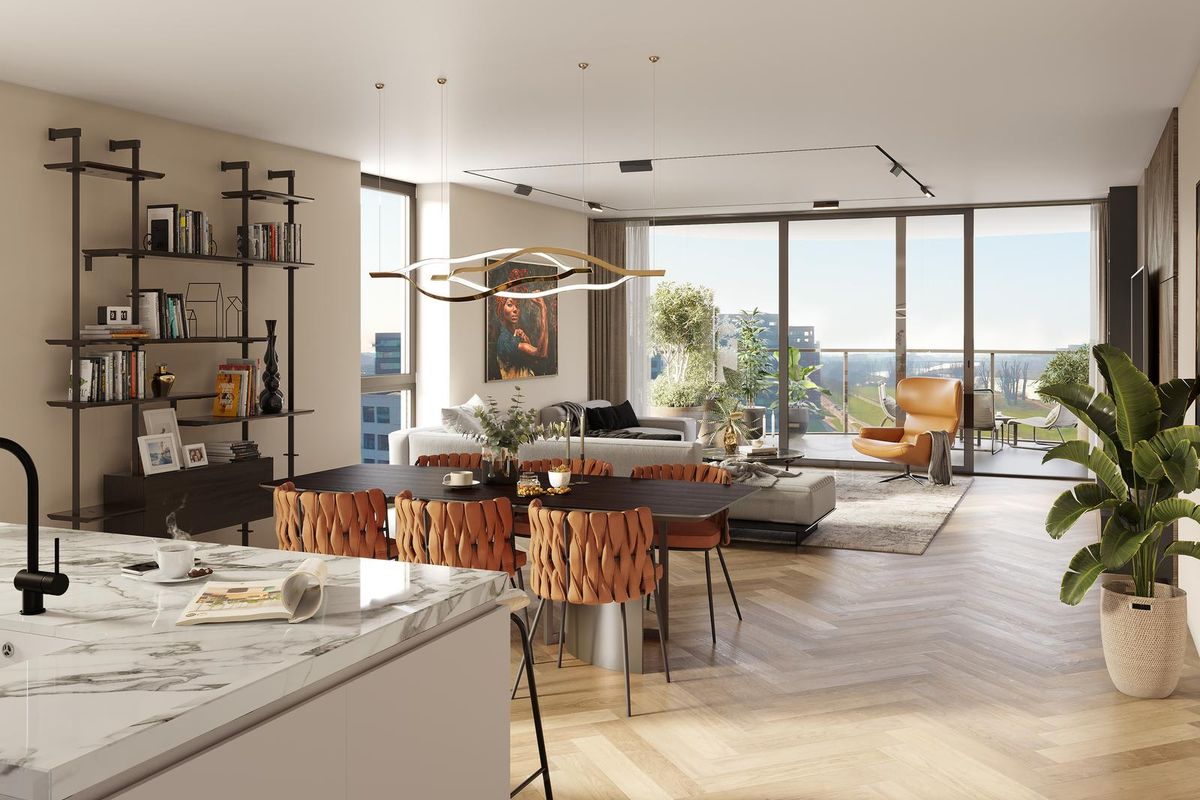 Type G is een van de laatste beschikbare appartementen – en biedt iets bijzonders. Gelegen op de hoek van het gebouw, met weids uitzicht over de Maas en de stad, is dit royale drie- of vierkamerappartement ontworpen voor wie kiest voor licht, ruimte en comfort.